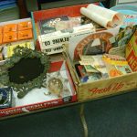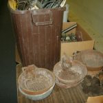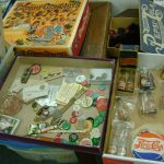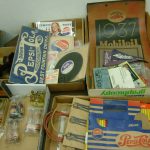 FORD tractor, beer trays, beer mirrors and signs, tin type photos and other photos, cigar molds, soda collectibles, Lost in Space roto-Jet gun, vintage games, Untouchables Detective set, watch fobs, implement trade cards, Railroad lanterns and lock, beer cans, Evinrude and Hamm’s cards, jewelry and watches, tobacco items, vintage beer and soda calendars, G.I Joe, Circus posters, magician magazines, paper ephemera, Pyres, Fenton glass, license plates, oil cans, Ford Hood Ornaments, cap guns, vintage auto horns, cigar boxes, records, galvanized pails, cast iron lamp, lightning ball and rod, child’s books, thermometers, saws, spears, curved glass China cabinet, stools, treadle sewing machine, tool hod, steel implement wheels, mirrors, bicycles, Styrofoam, step ladder, chairs, coffee and end tables, chain saws, rolling tool box, glider bench, wheel barrow, walk behind single bottom plow, Ariens snowblower, air compressor, cast iron stove, copper wire, brass and scrap metal, garden tools, trailer, Christmas items, tools and hardware, household collectibles and more…..still setting up!