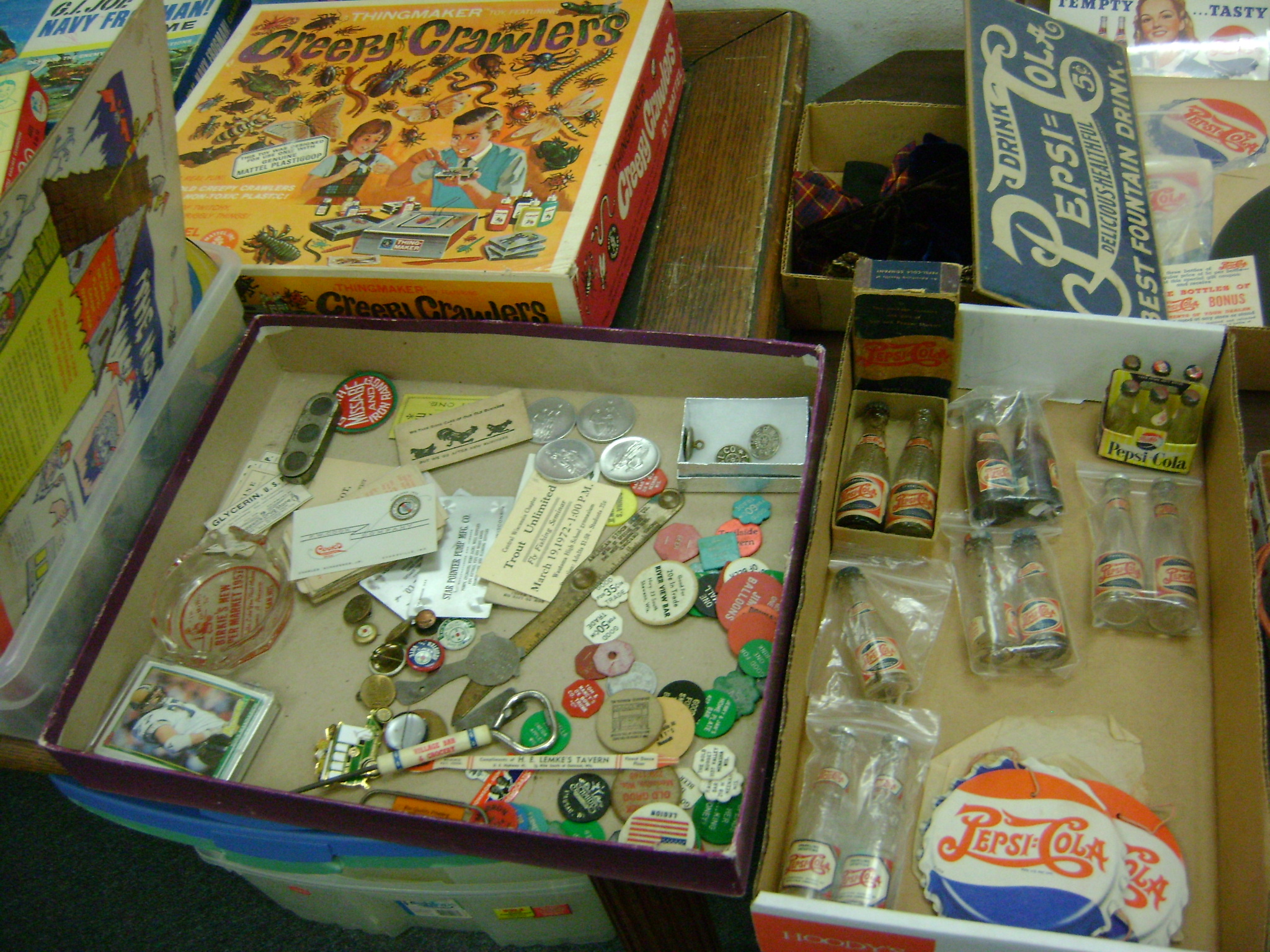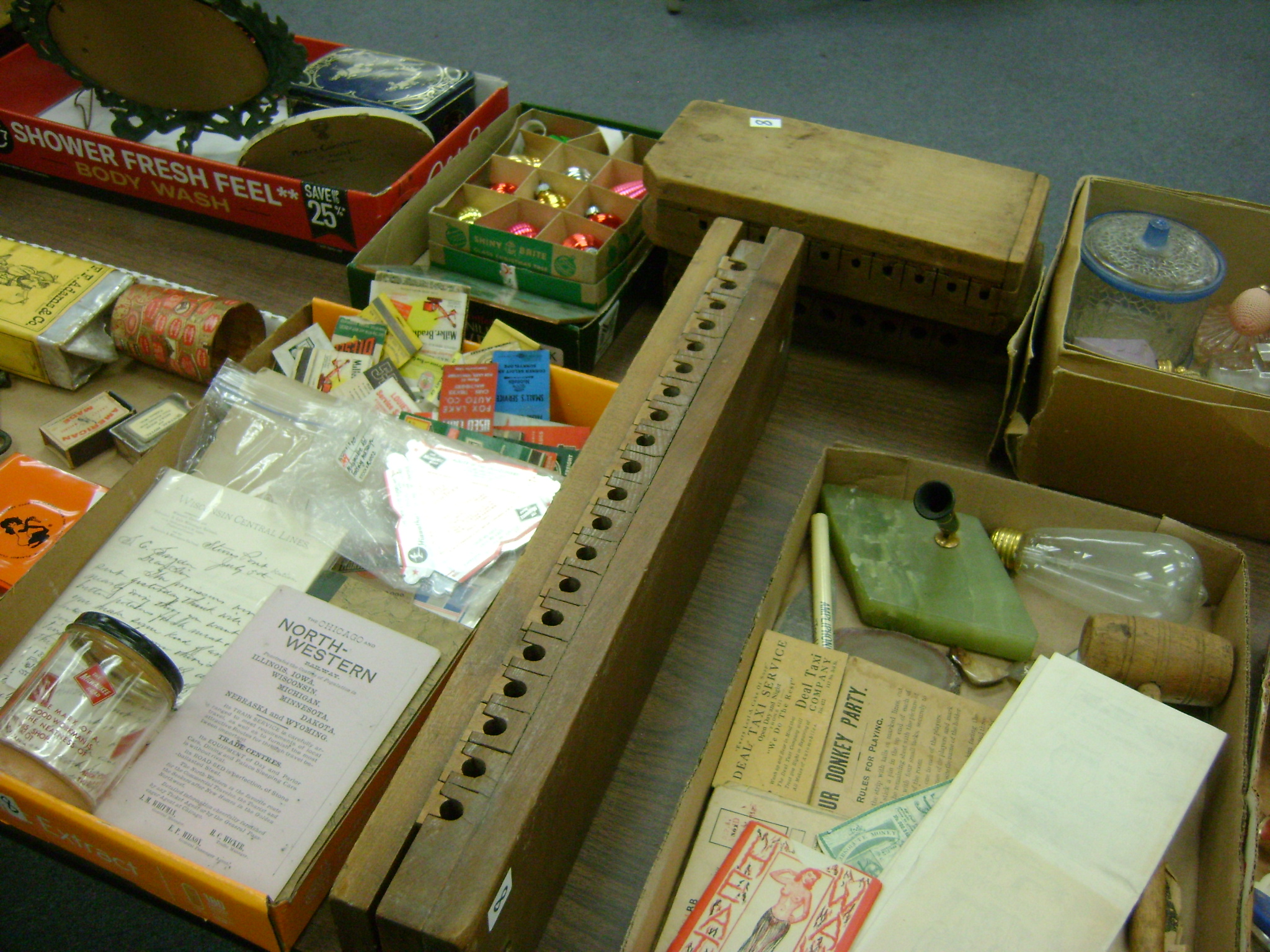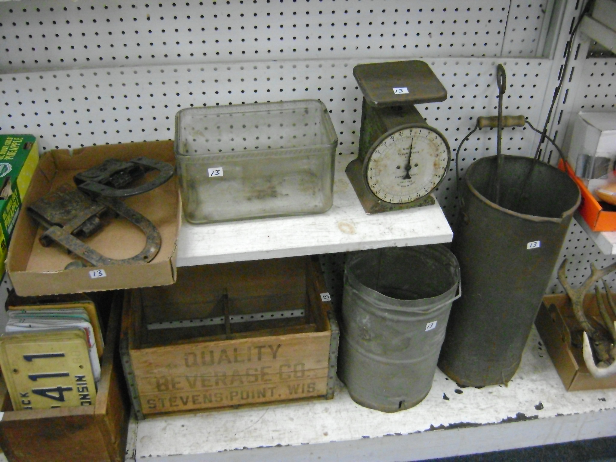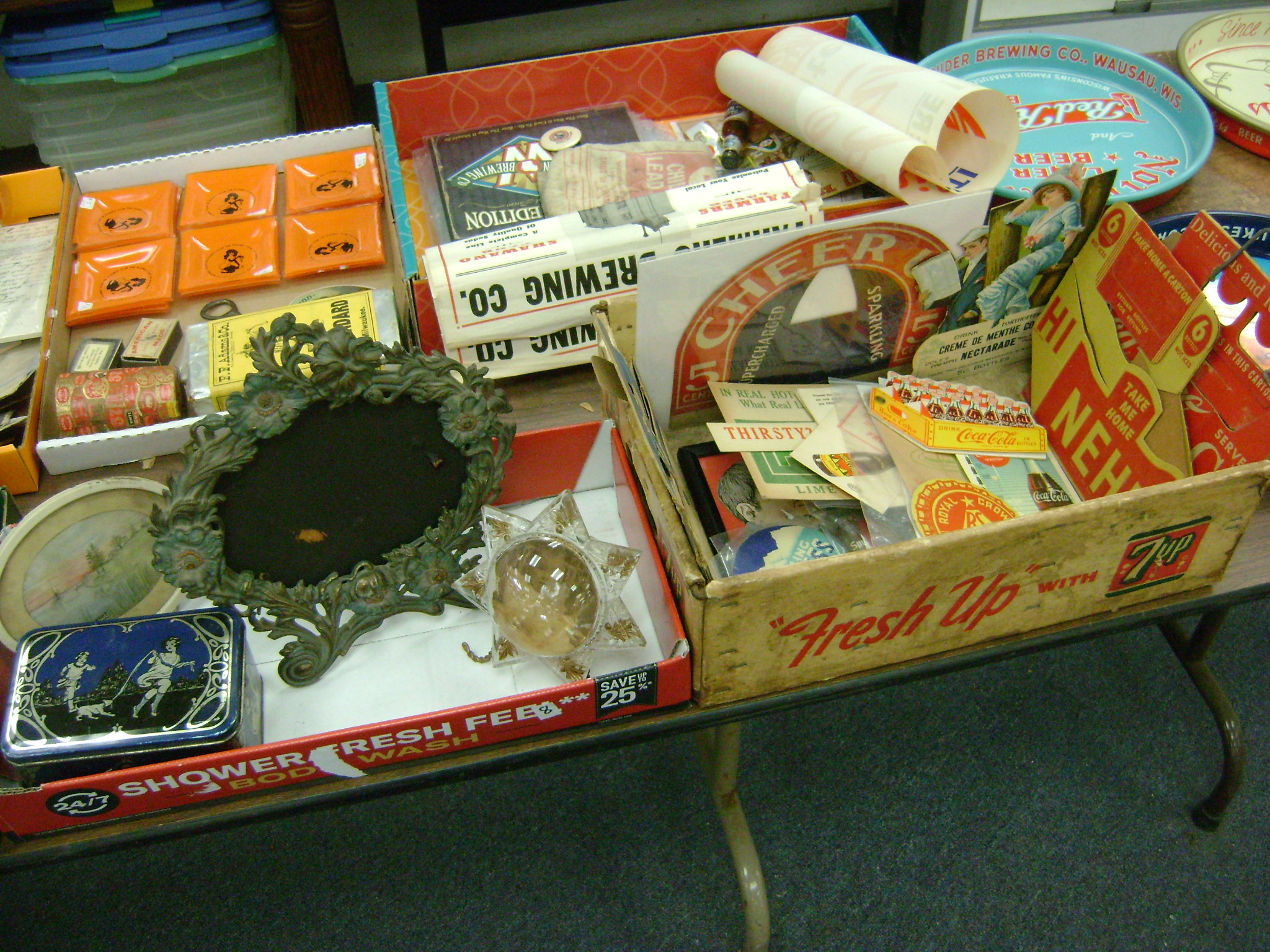 FORD tractor, beer trays, beer mirrors and signs, tin type photos and other photos, cigar molds, soda collectibles, Lost in Space roto-Jet gun, vintage games, Untouchables Detective set, watch fobs, implement trade cards, Railroad lanterns and lock, beer cans, Evinrude and Hamm’s cards, jewelry and watches, tobacco items, vintage beer and soda calendars, G.I Joe, Circus posters, magician magazines, paper ephemera, Pyres, Fenton glass, license plates, oil cans, Ford Hood Ornaments, cap guns, vintage auto horns, cigar boxes, records, galvanized pails, cast iron lamp, lightning ball and rod, child’s books, thermometers, saws, spears, curved glass China cabinet, stools, treadle sewing machine, tool hod, steel implement wheels, mirrors, bicycles, Styrofoam, step ladder, chairs, coffee and end tables, chain saws, rolling tool box, glider bench, wheel barrow, walk behind single bottom plow, Ariens snowblower, air compressor, cast iron stove, copper wire, brass and scrap metal, garden tools, trailer, Christmas items, tools and hardware, household collectibles and more…..still setting up!
