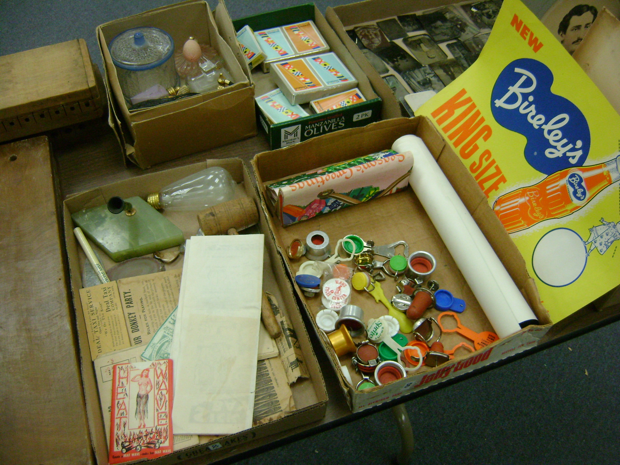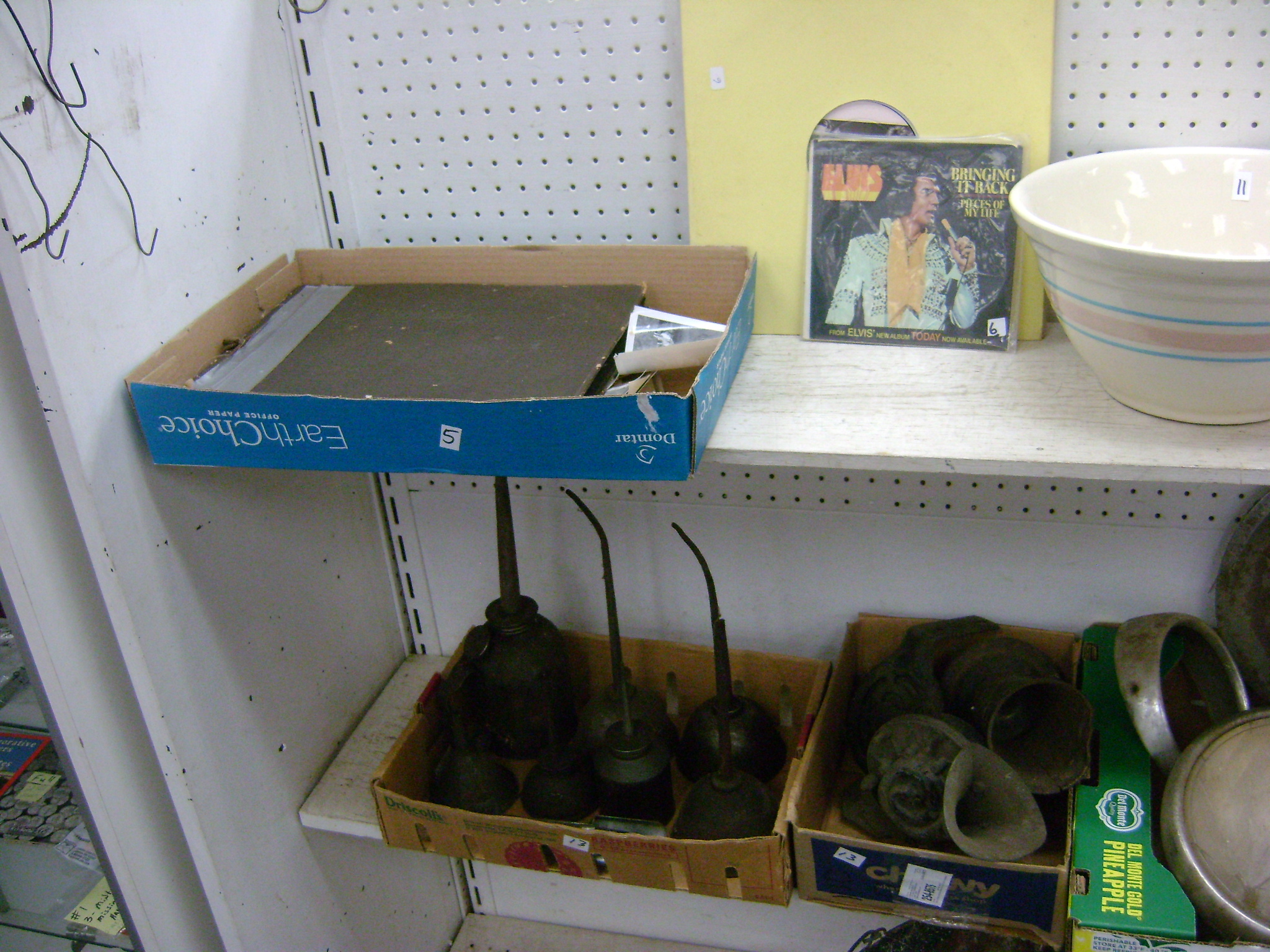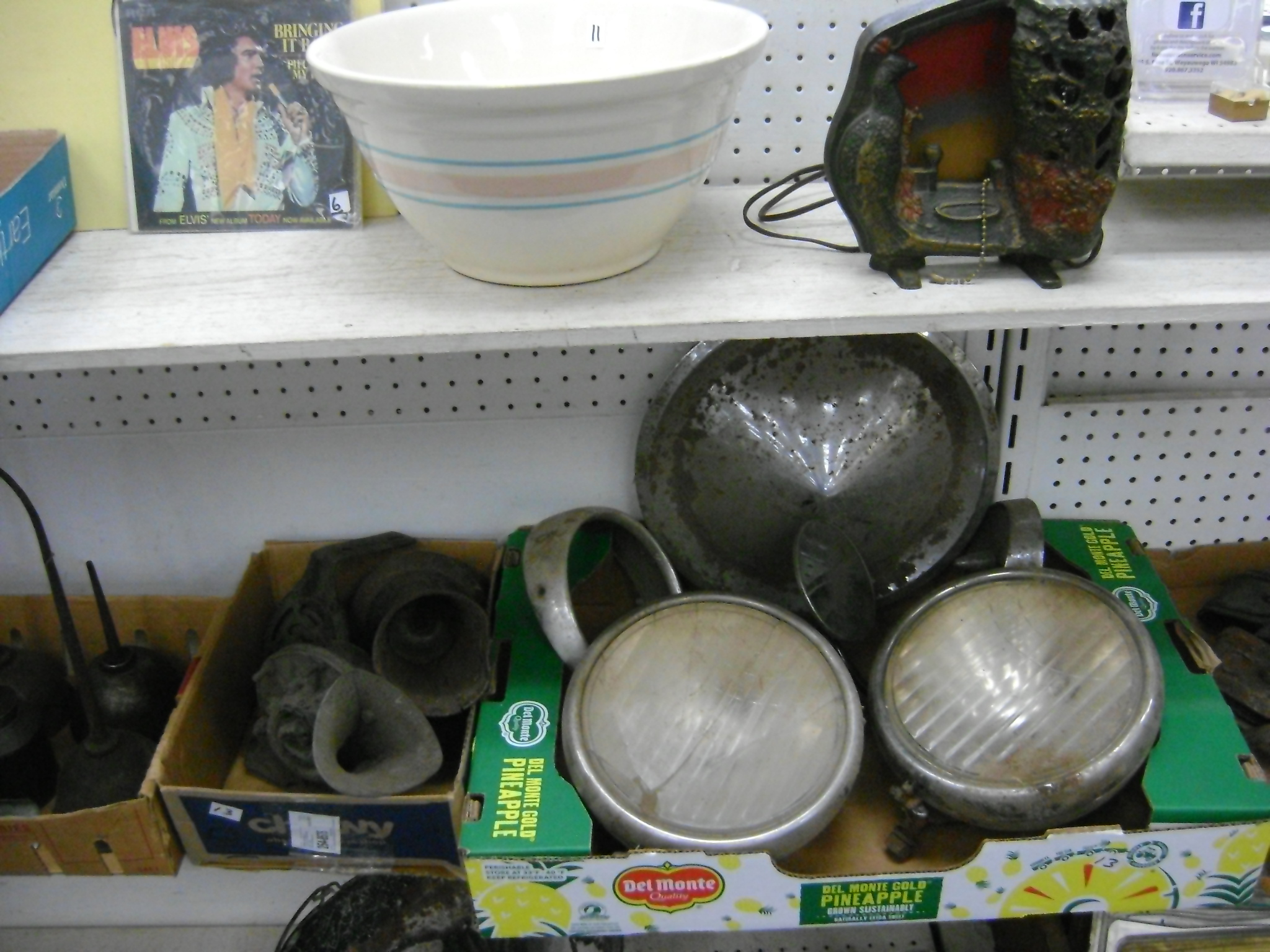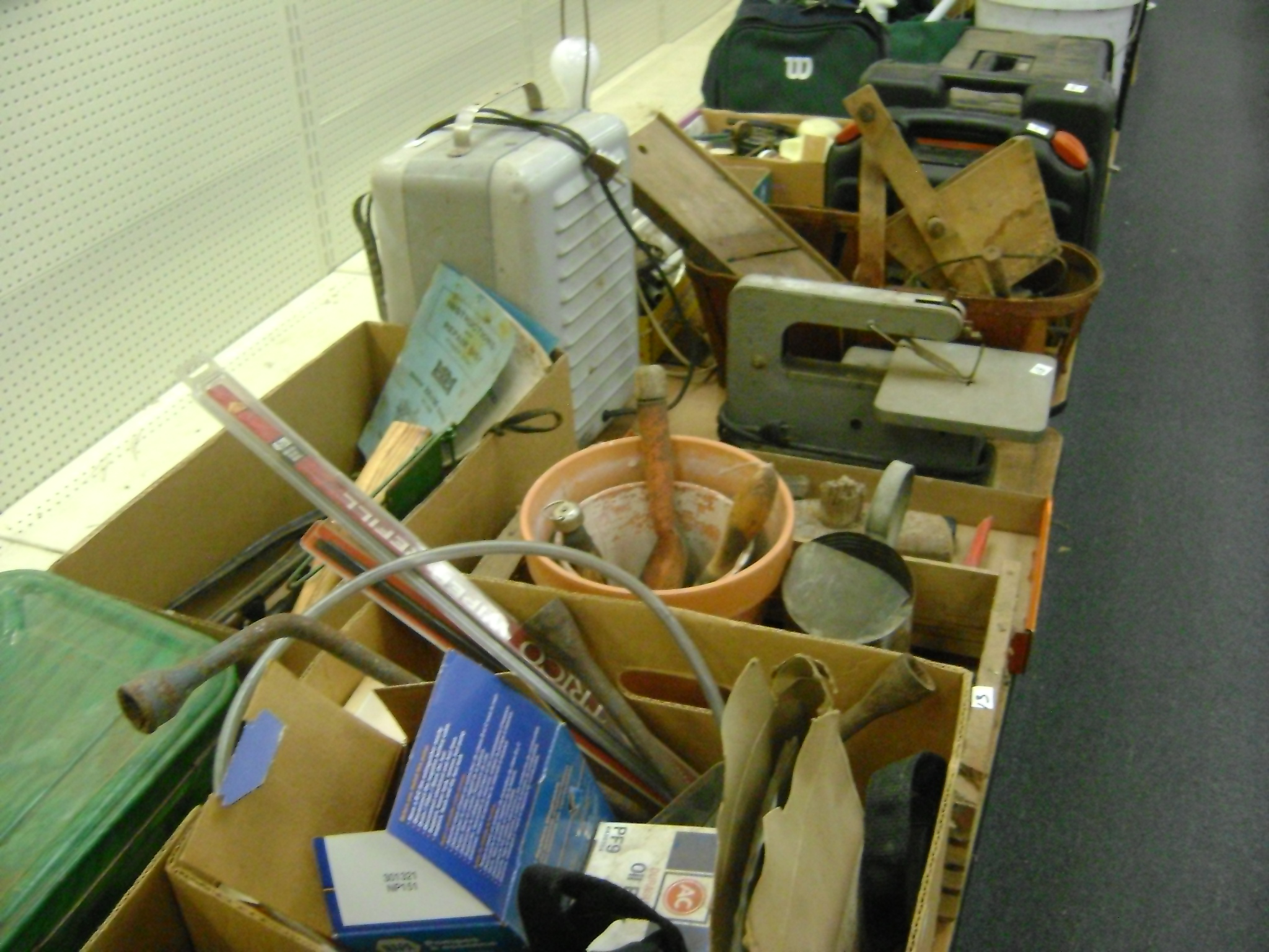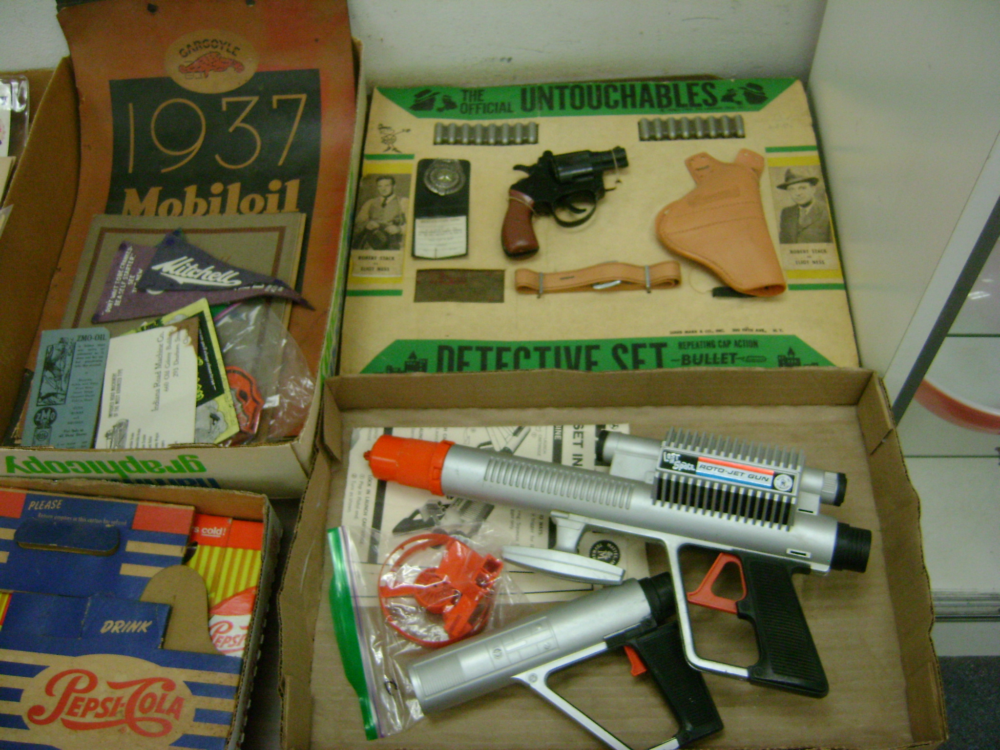 FORD tractor, beer trays, beer mirrors and signs, tin type photos and other photos, cigar molds, soda collectibles, Lost in Space roto-Jet gun, vintage games, Untouchables Detective set, watch fobs, implement trade cards, Railroad lanterns and lock, beer cans, Evinrude and Hamm’s cards, jewelry and watches, tobacco items, vintage beer and soda calendars, G.I Joe, Circus posters, magician magazines, paper ephemera, Pyres, Fenton glass, license plates, oil cans, Ford Hood Ornaments, cap guns, vintage auto horns, cigar boxes, records, galvanized pails, cast iron lamp, lightning ball and rod, child’s books, thermometers, saws, spears, curved glass China cabinet, stools, treadle sewing machine, tool hod, steel implement wheels, mirrors, bicycles, Styrofoam, step ladder, chairs, coffee and end tables, chain saws, rolling tool box, glider bench, wheel barrow, walk behind single bottom plow, Ariens snowblower, air compressor, cast iron stove, copper wire, brass and scrap metal, garden tools, trailer, Christmas items, tools and hardware, household collectibles and more…..still setting up!