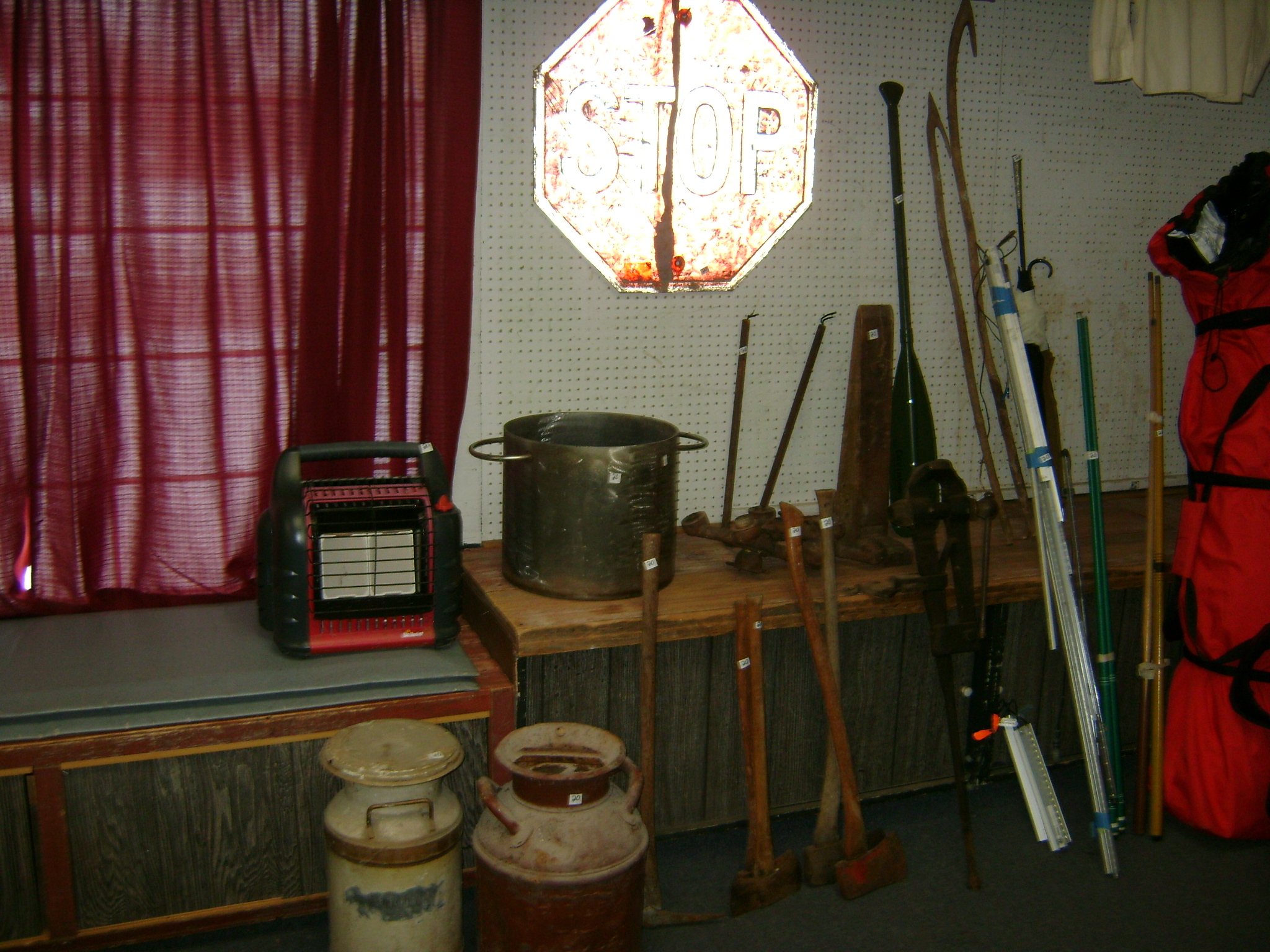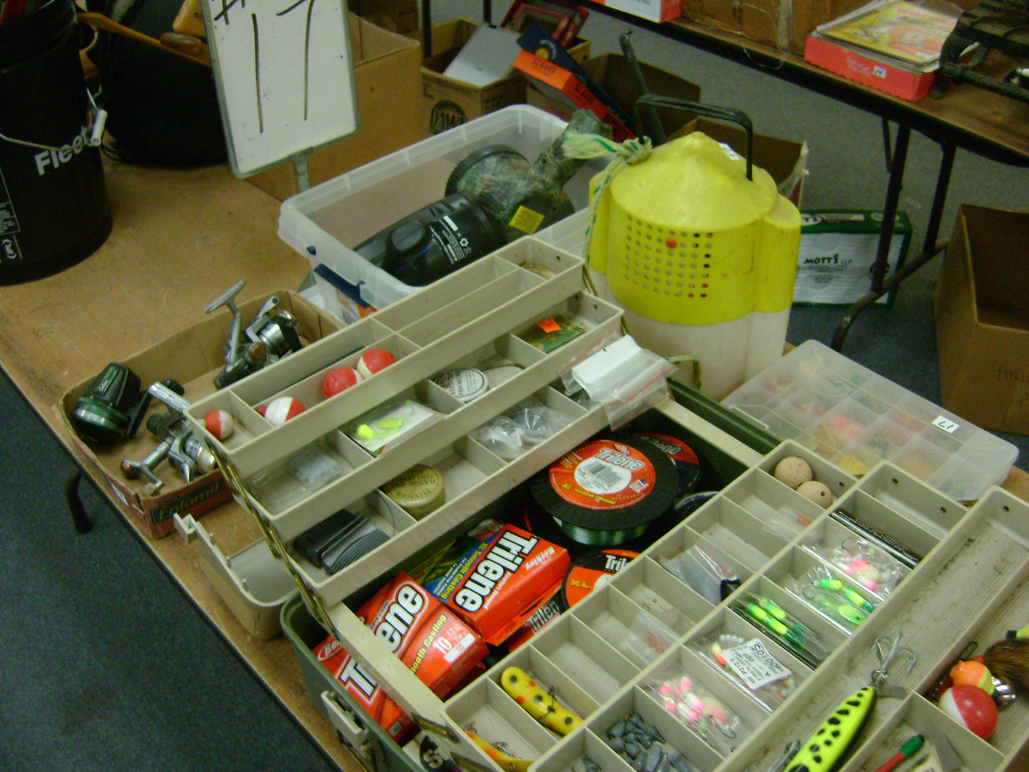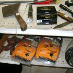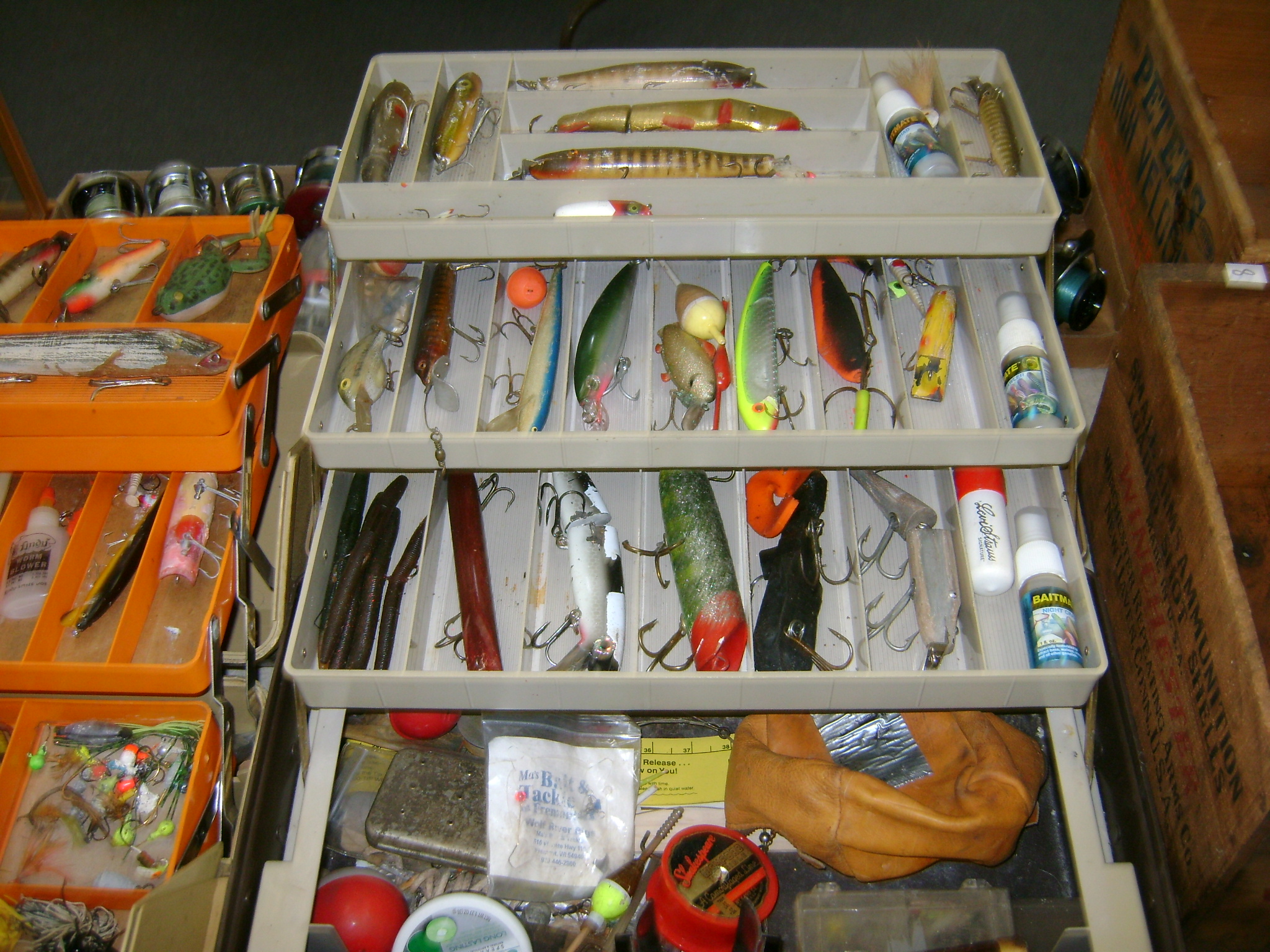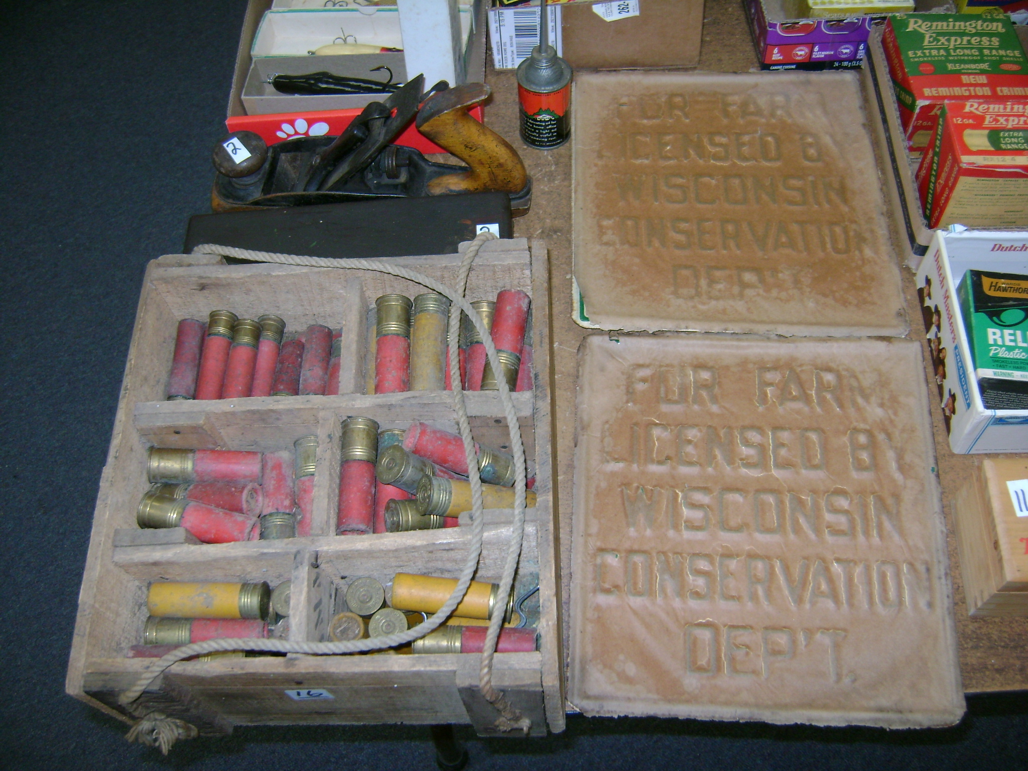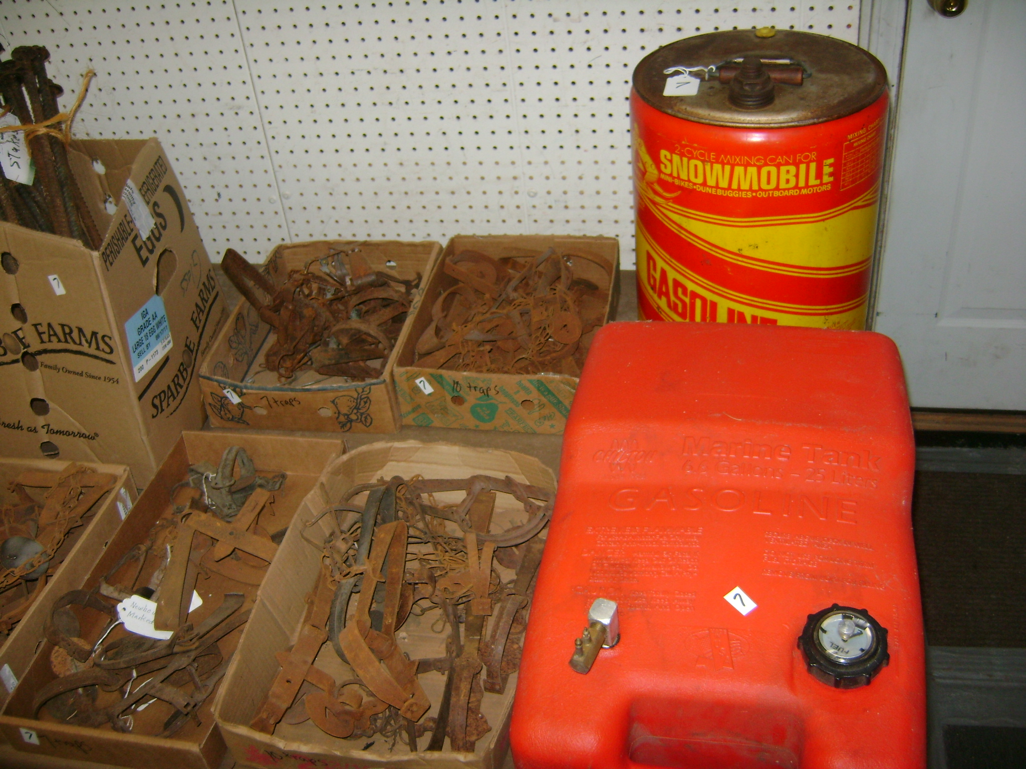 BB and Pellet Guns, traps, Ammo and Ammo boxes, knives, wood, cork and plastic decoys, Bear Polar and Super Grizzly recurve bows, Shakespear and Indian archery recurve bows, fishing rods, reels and tackle, signs, Coleman lanterns, oil and gas cans, MEC reloaders, cast iron pans, axes and hatchets, Orvis glass minnow trap, wood, aluminum and graphite arrows, snow shoes, chain saws, tools, gun cases, ice augers, Cobra 2000GTL channel AM/SSB CB radio and accessories, prints, cross bow, Mr. Heater, Eskimo portable ice shanty, PennYan wooden boat.