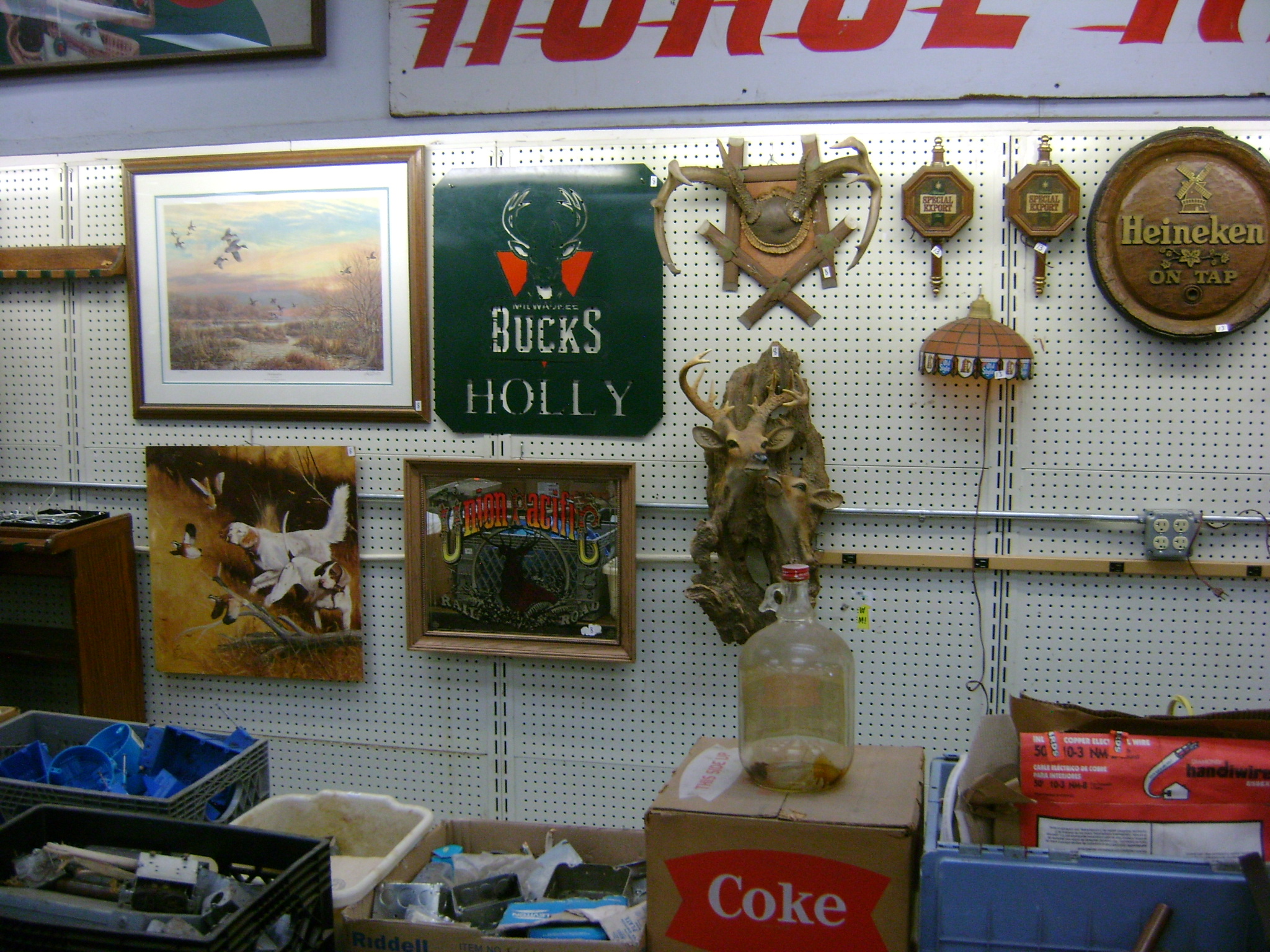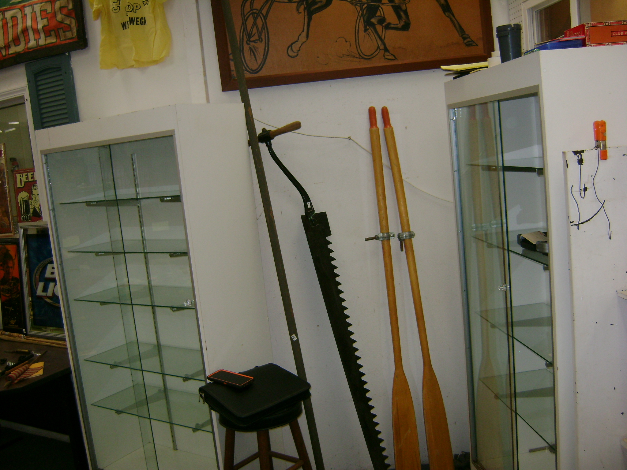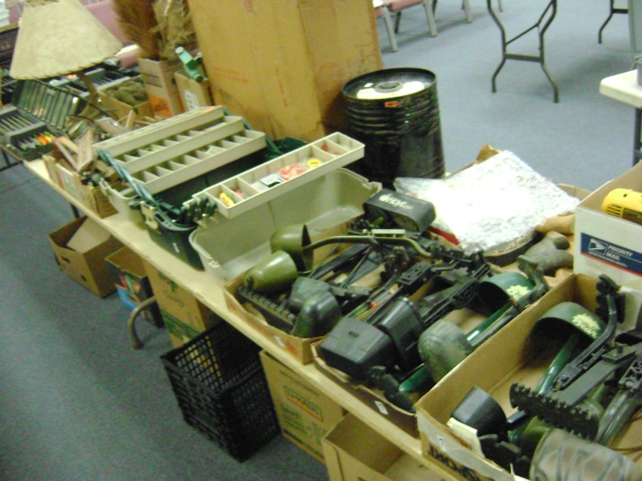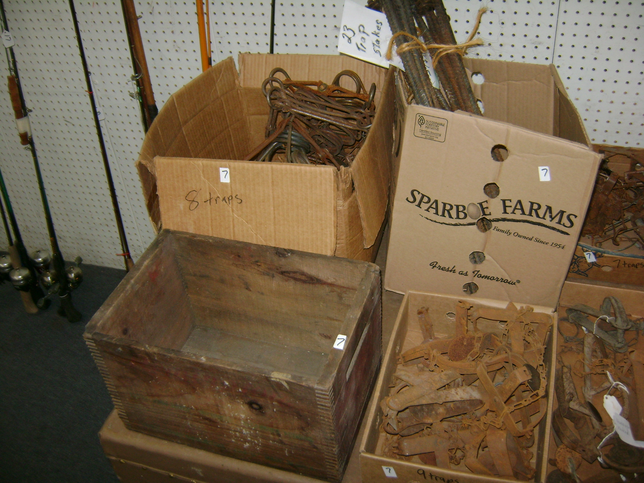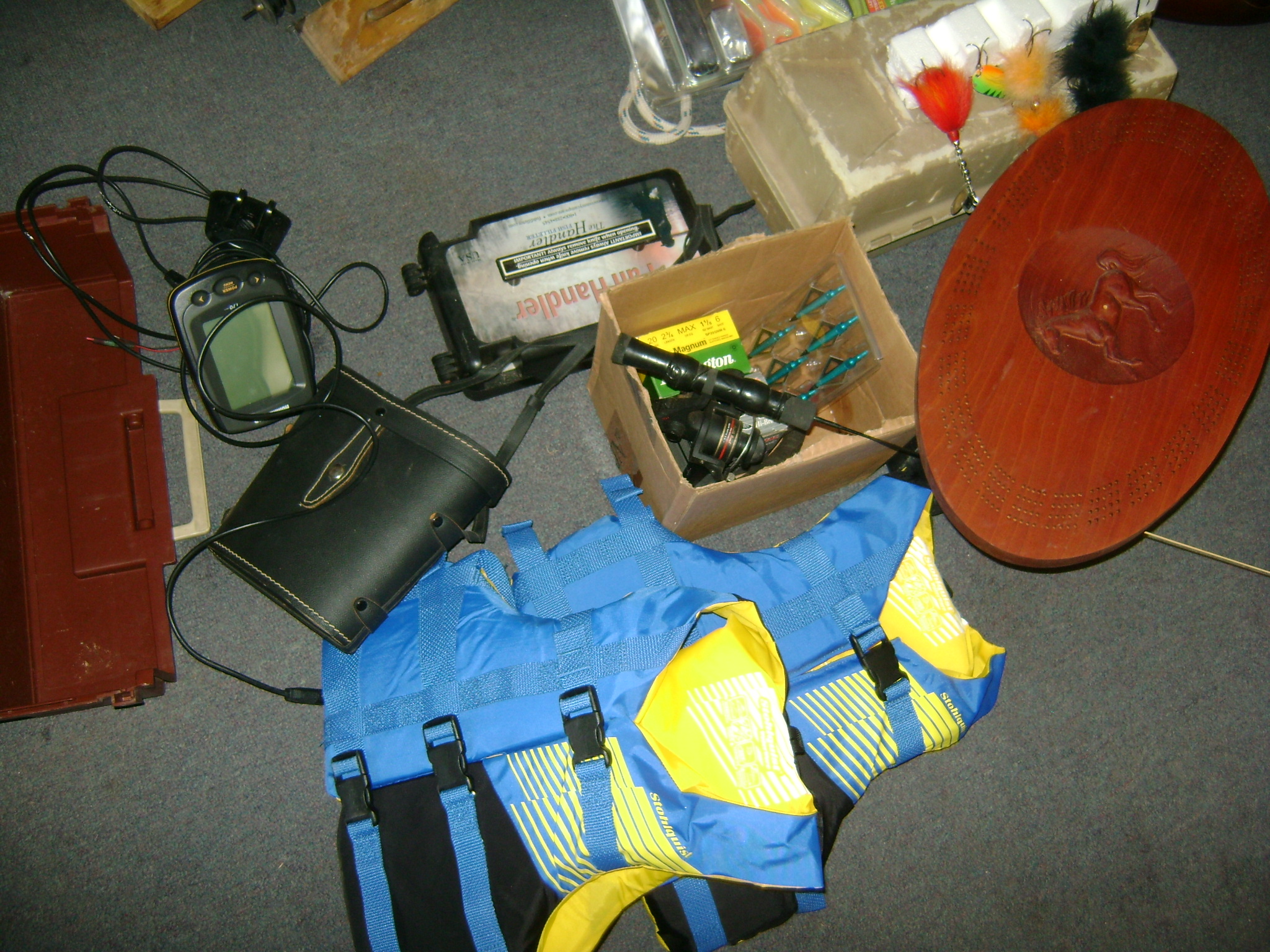 BB and Pellet Guns, traps, Ammo and Ammo boxes, knives, wood, cork and plastic decoys, Bear Polar and Super Grizzly recurve bows, Shakespear and Indian archery recurve bows, fishing rods, reels and tackle, signs, Coleman lanterns, oil and gas cans, MEC reloaders, cast iron pans, axes and hatchets, Orvis glass minnow trap, wood, aluminum and graphite arrows, snow shoes, chain saws, tools, gun cases, ice augers, Cobra 2000GTL channel AM/SSB CB radio and accessories, prints, cross bow, Mr. Heater, Eskimo portable ice shanty, PennYan wooden boat.