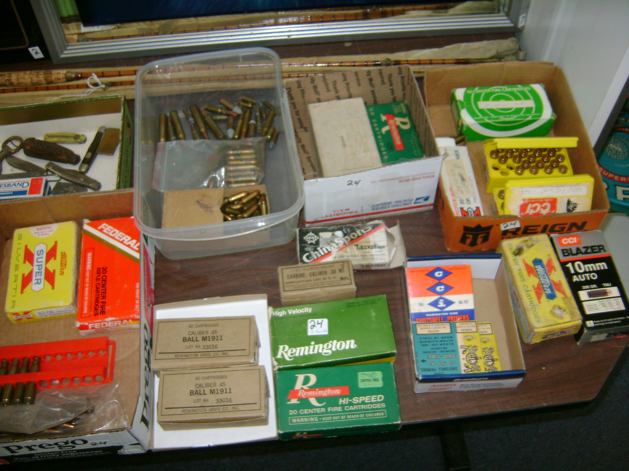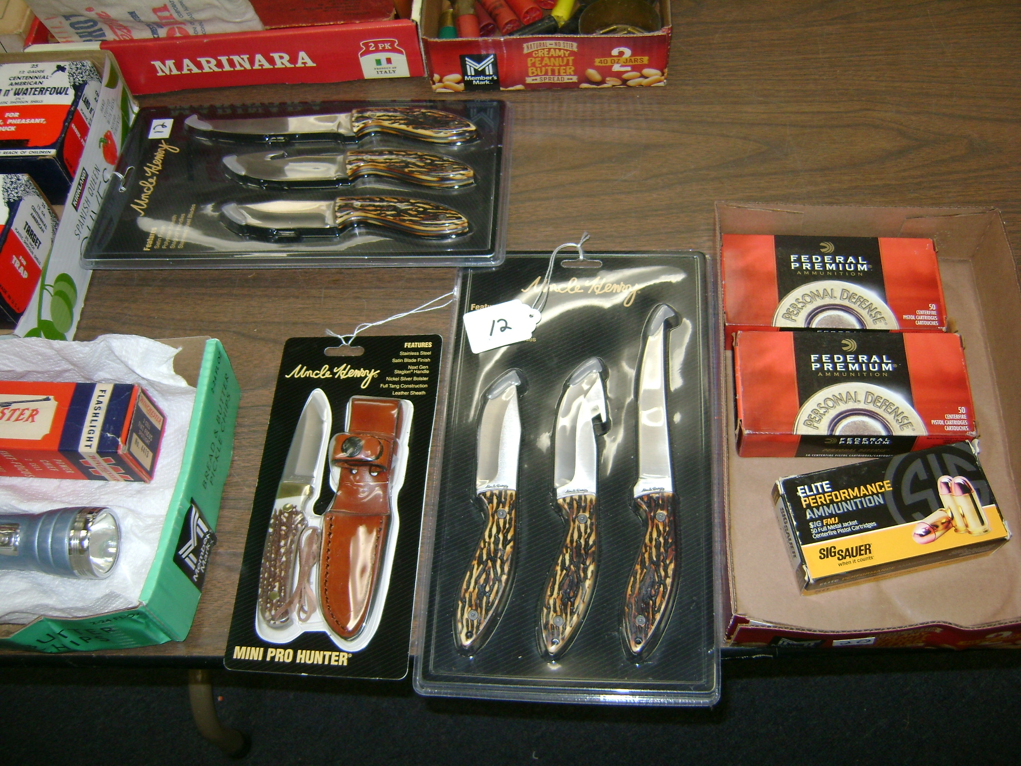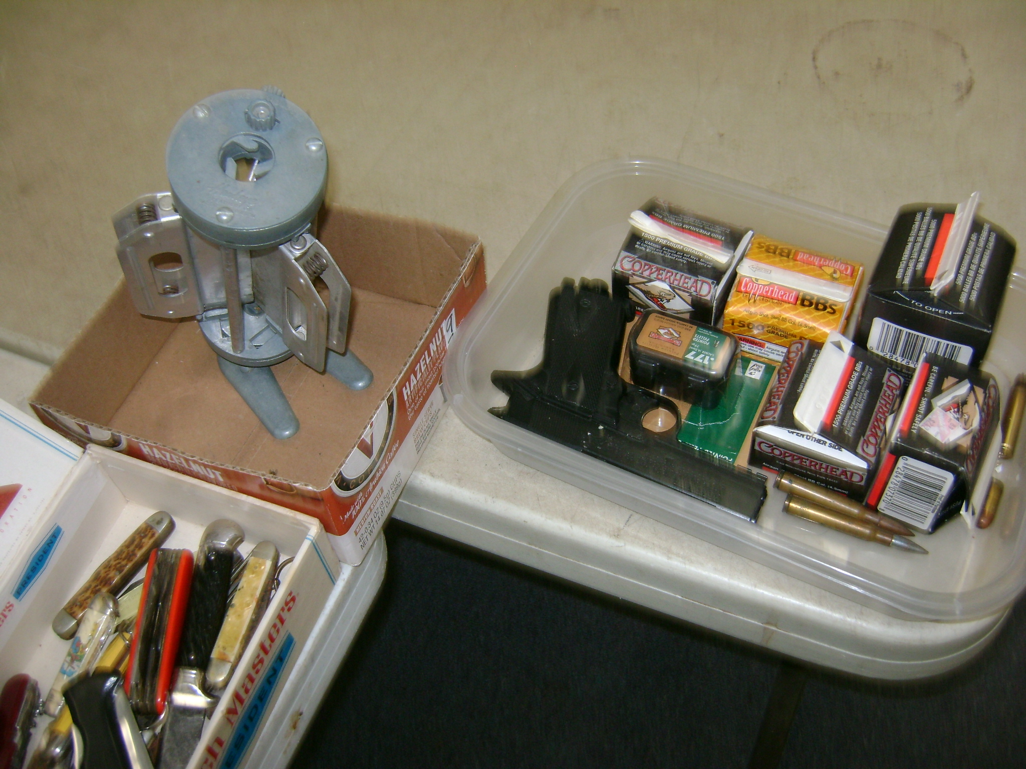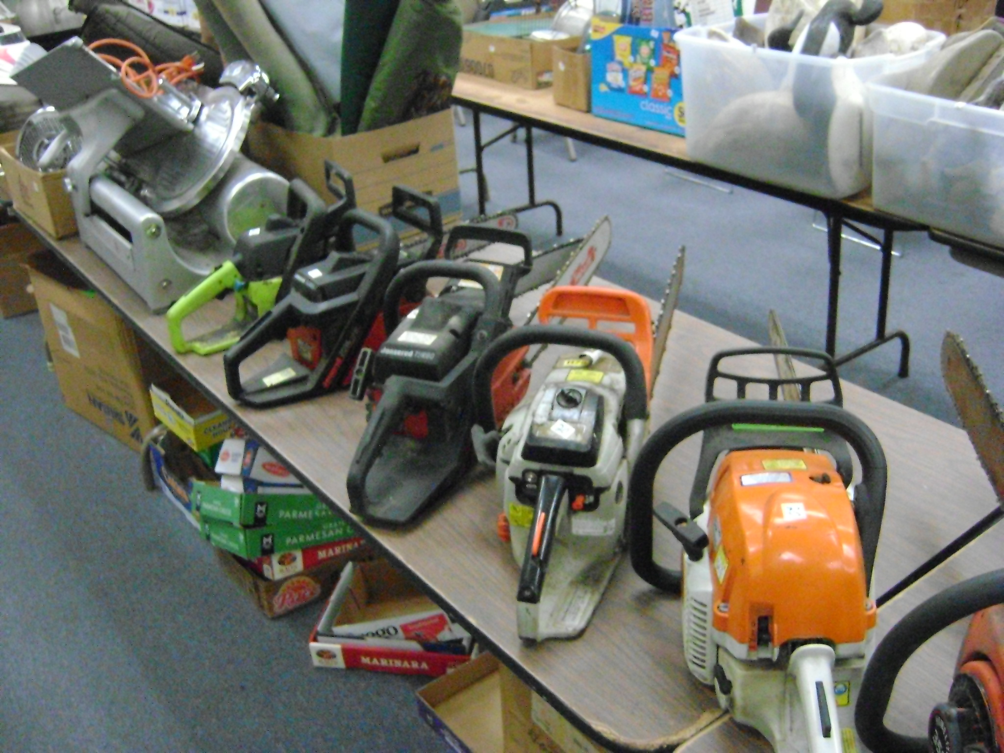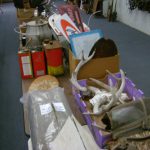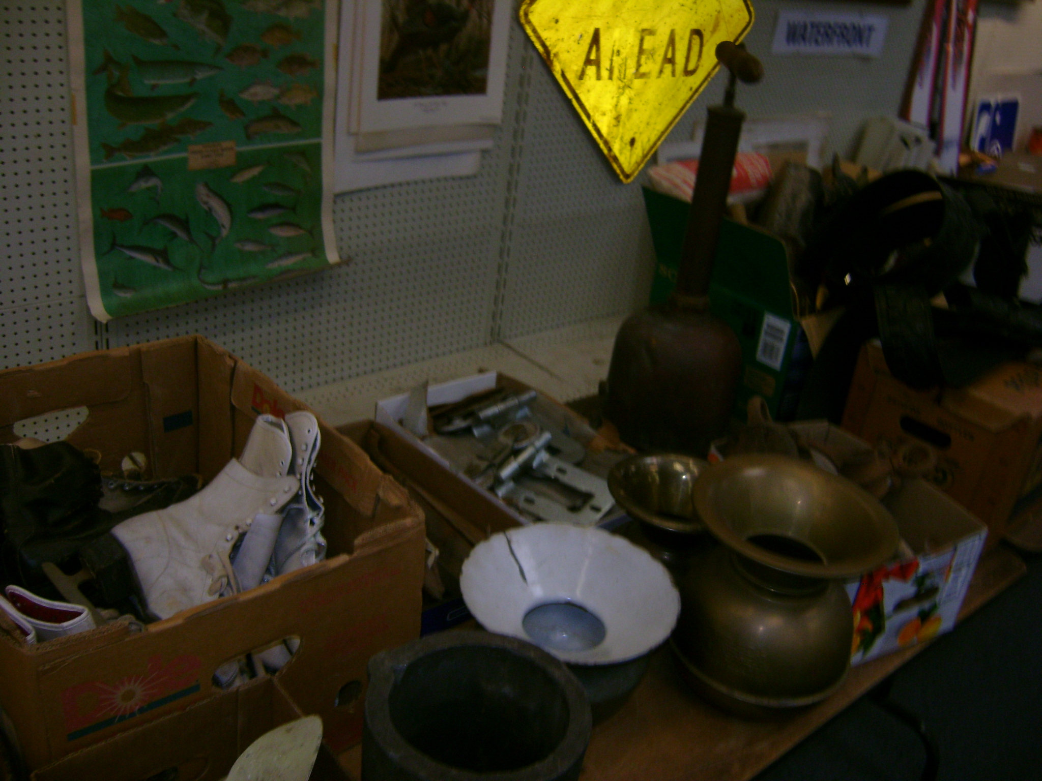 BB and Pellet Guns, traps, Ammo and Ammo boxes, knives, wood, cork and plastic decoys, Bear Polar and Super Grizzly recurve bows, Shakespear and Indian archery recurve bows, fishing rods, reels and tackle, signs, Coleman lanterns, oil and gas cans, MEC reloaders, cast iron pans, axes and hatchets, Orvis glass minnow trap, wood, aluminum and graphite arrows, snow shoes, chain saws, tools, gun cases, ice augers, Cobra 2000GTL channel AM/SSB CB radio and accessories, prints, cross bow, Mr. Heater, Eskimo portable ice shanty, PennYan wooden boat.