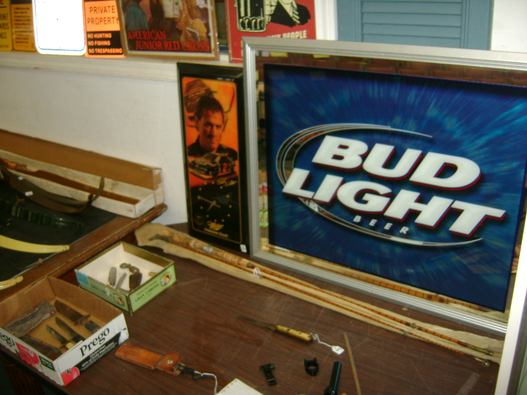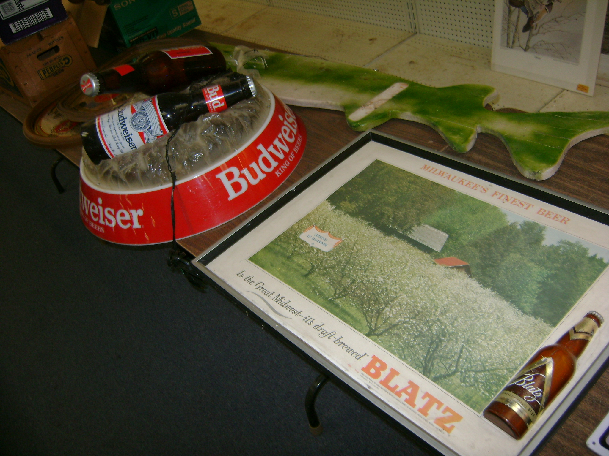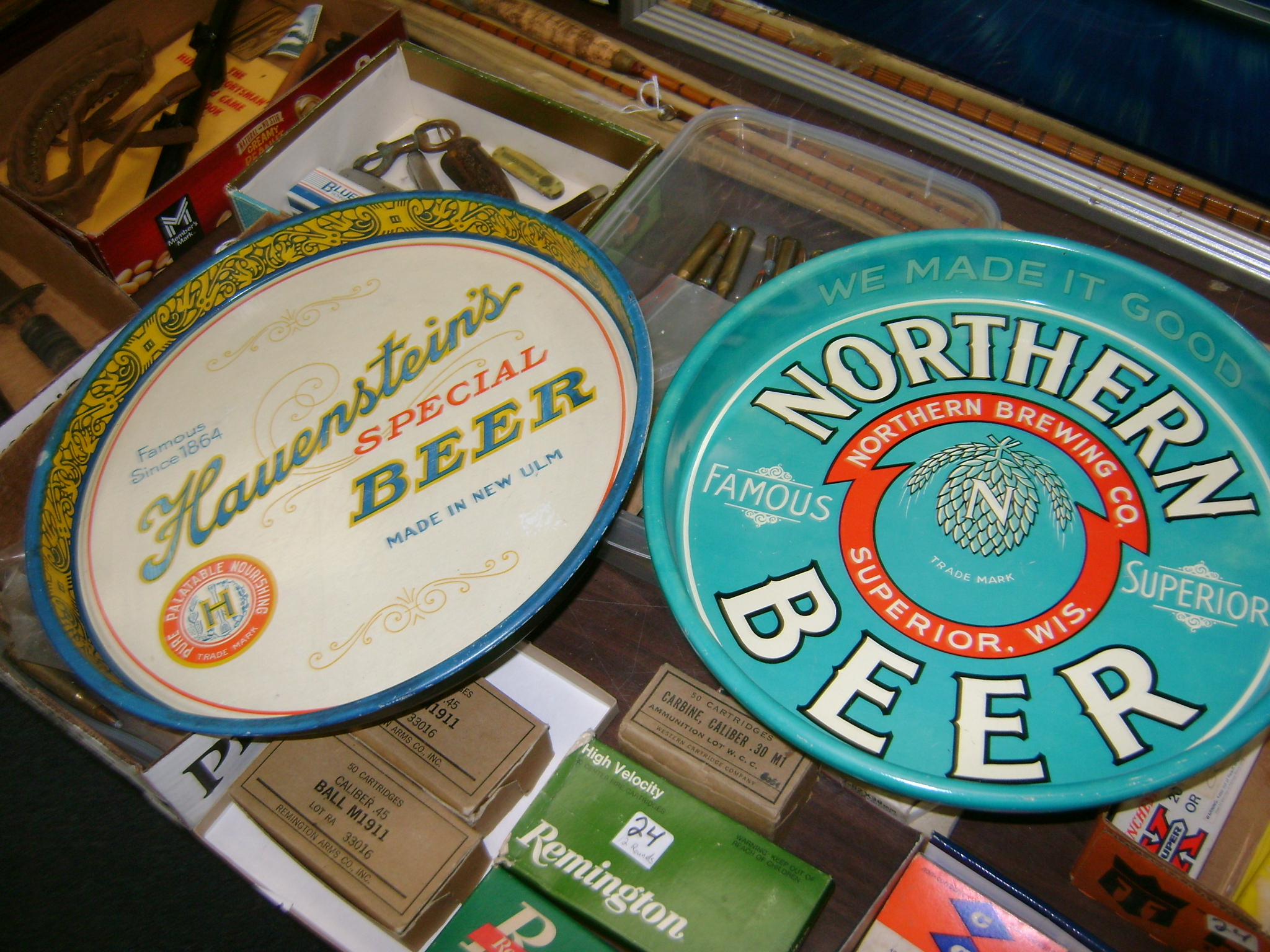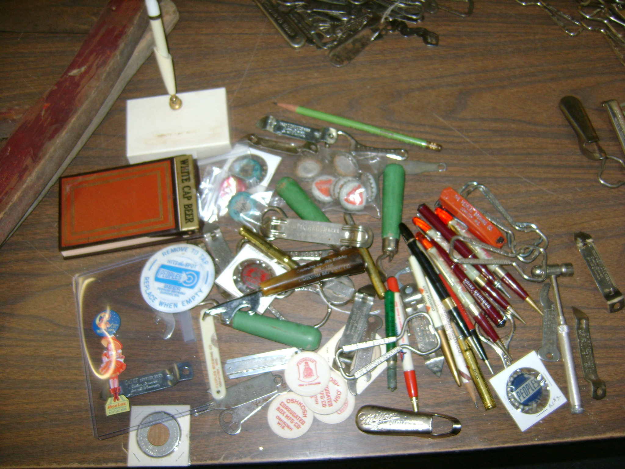 Neon Beer Signs, Beer Trays, beer bottle openers, coasters, glasses, and advertising items, Packer pictures, Fuzzy Thurston and Brett Favre, autographed pictures