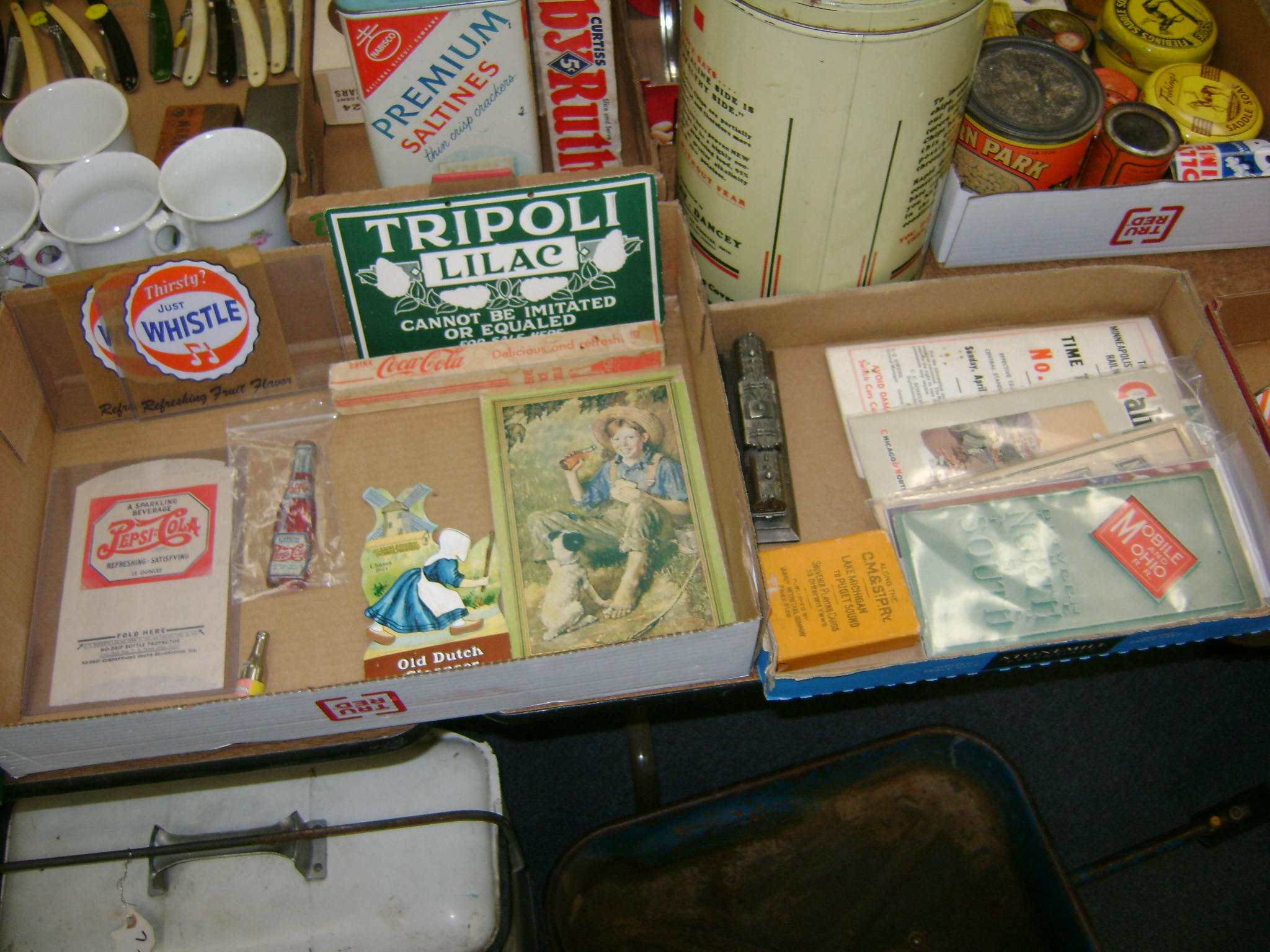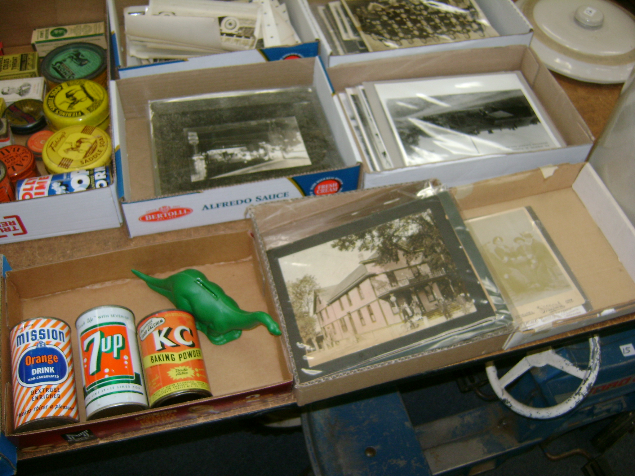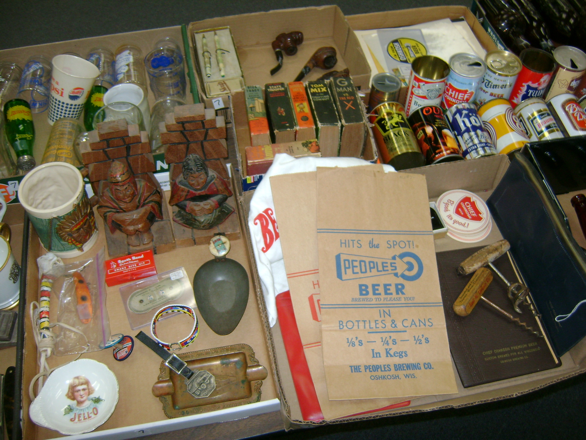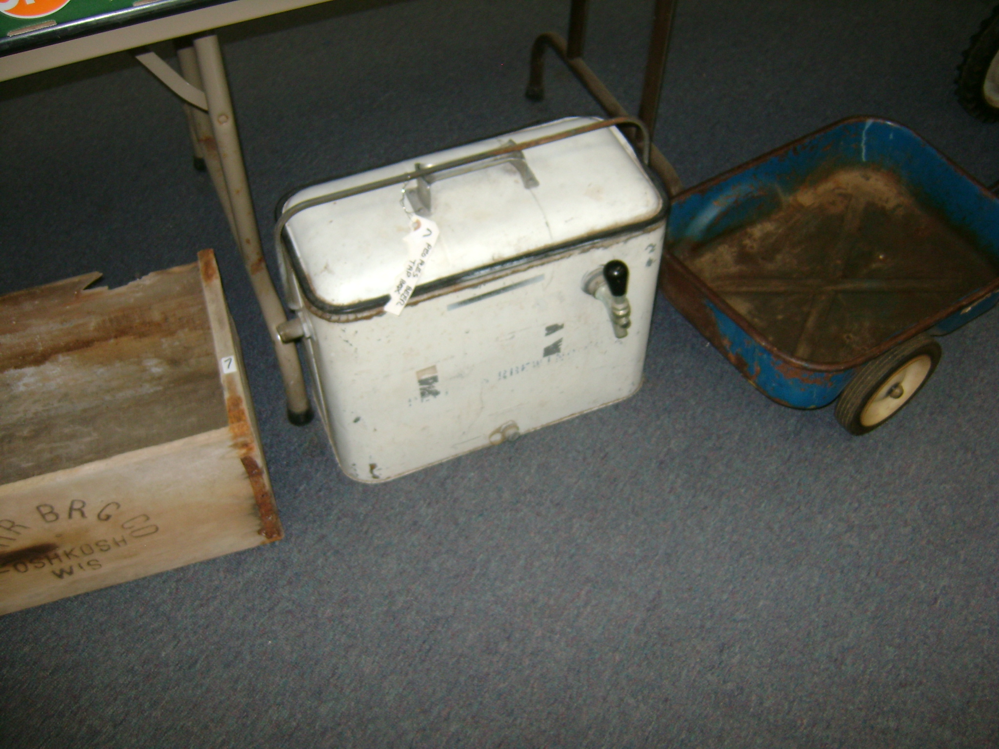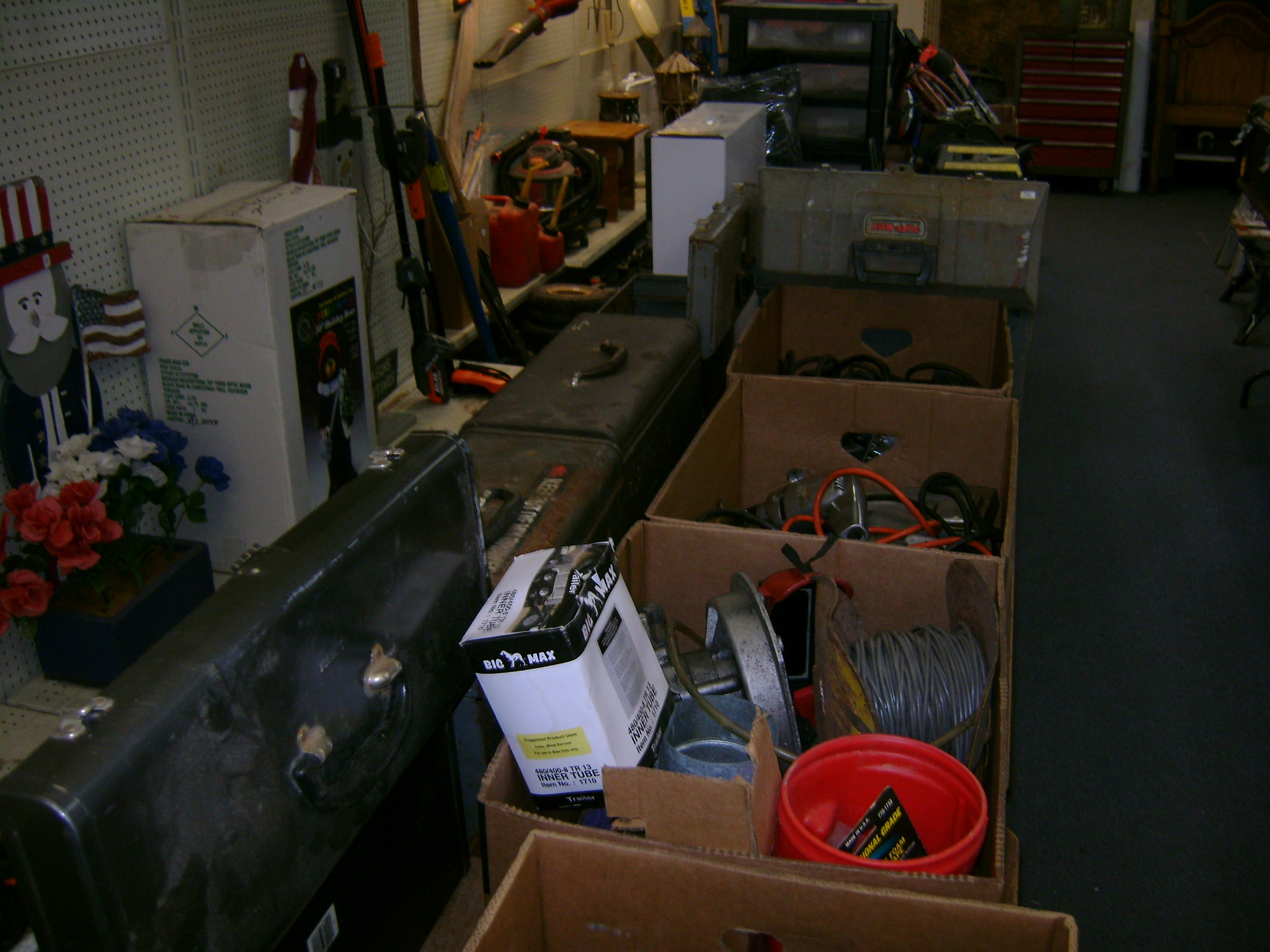 2005 Economy Hauler enclosed trailer, Tonka Parcel Delivery truck, Antique Vintage photos, advertising tins and boxes, beer signs, beer tap and knobs, beer advertising, trays and bottles, antique bottles, soda advertising, milk bottles, Comic Books ( 10 and 12 cents), Major Matt Mason toys, straight razors, banks, pencil salesman sample, Michigan Stove Match holder, depression glass, Griswold, Wagner ware and other cast iron pans, cameras, Weller vases, Roseville, kitchen scales, decanters, knives, tackle box, carpenter planes, draw shaves, gas and oil cans, Coleman lantern, Ford Pedal tractor with trailer, tools, tool boxes, and hardware, rolling tool box bottom, double wash tubs and stand, wood barrels, brass fire extinguisher, chest of drawers and dressers, 2 home kneelers, egg and gum ball machines, signs, wagons, Hangkai 3.5 boat motor, Generac Generators, chain saws and parts, air conditioner, gas pressure washers, plastic folding tables, 7 foot Cigar Wooden Indian, stereos and speakers, patio furniture, lift chair, table and chairs, safe, Keller ladder, Shop Vacs, floor jacks and stands, leaf blowers, camper cover and steps, Froth-Pak Sealant 200, grills, Lincoln electric welder, bicycles, engine hoist, skid steer folks, collapsible canoe, sprayers, weed eater with extra attachments, lawn spreaders, fencing, household, collectibles and much more, still unpacking!