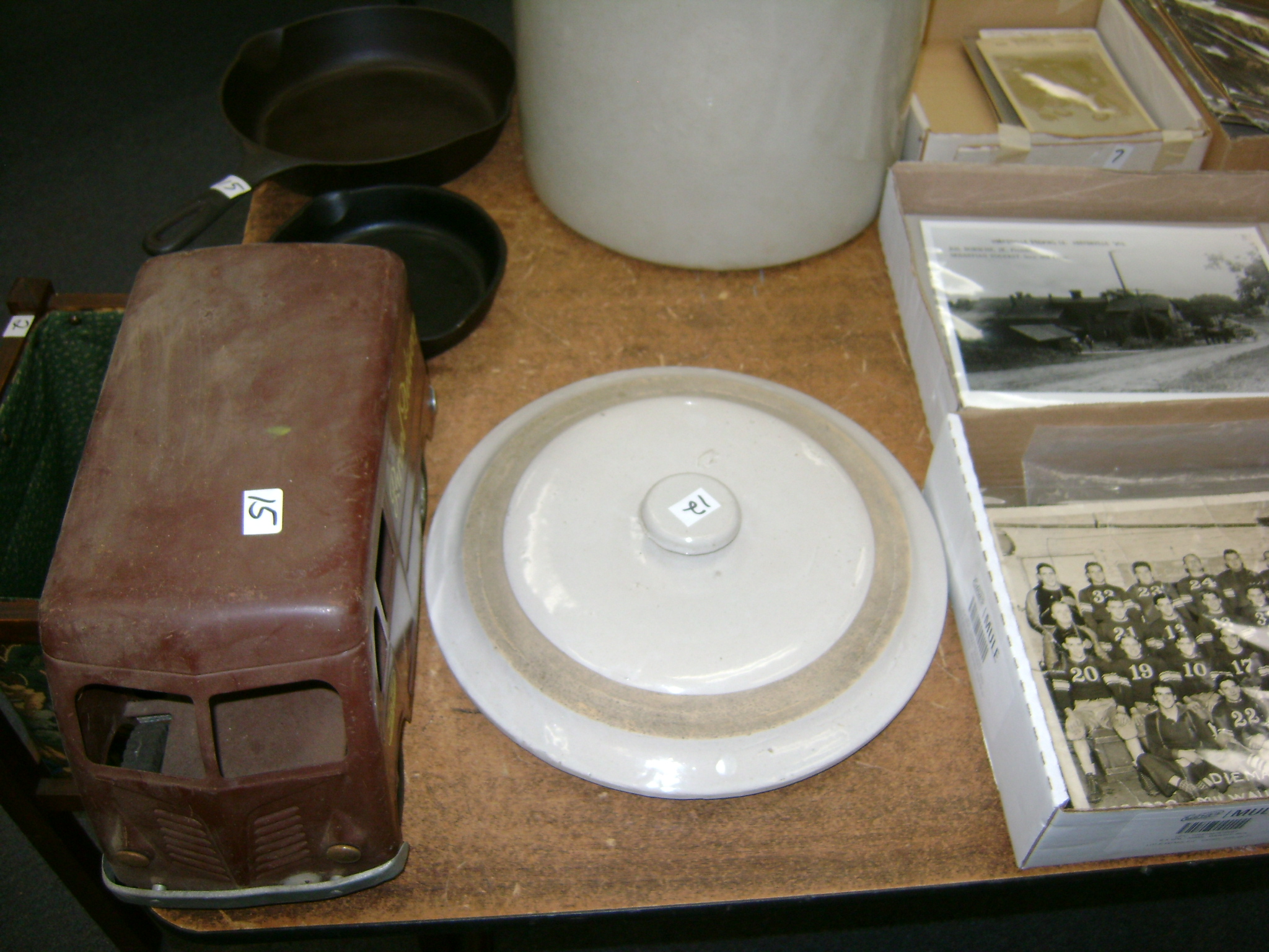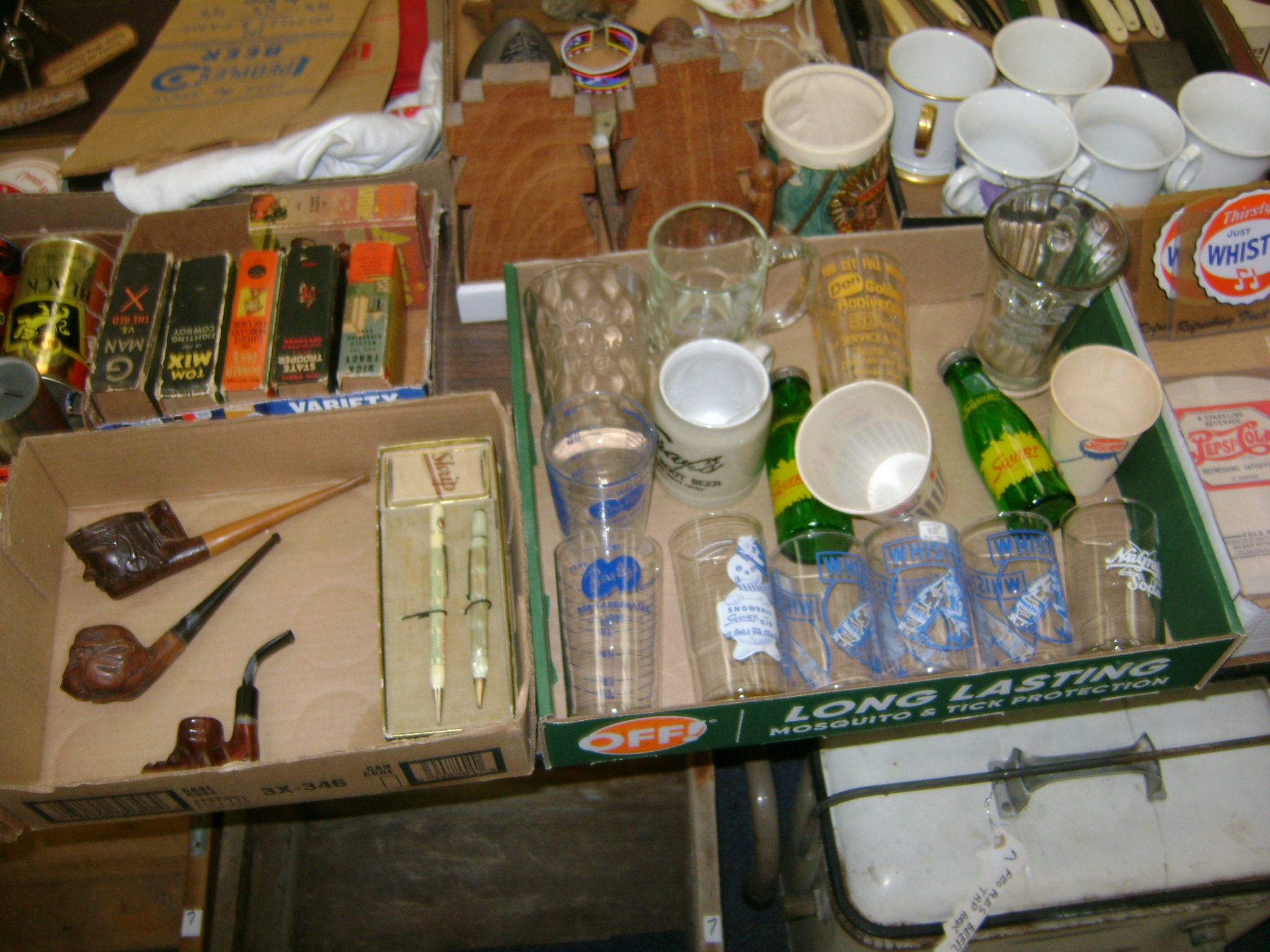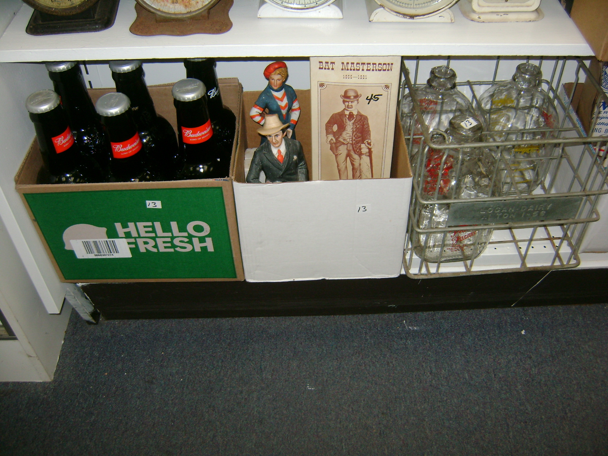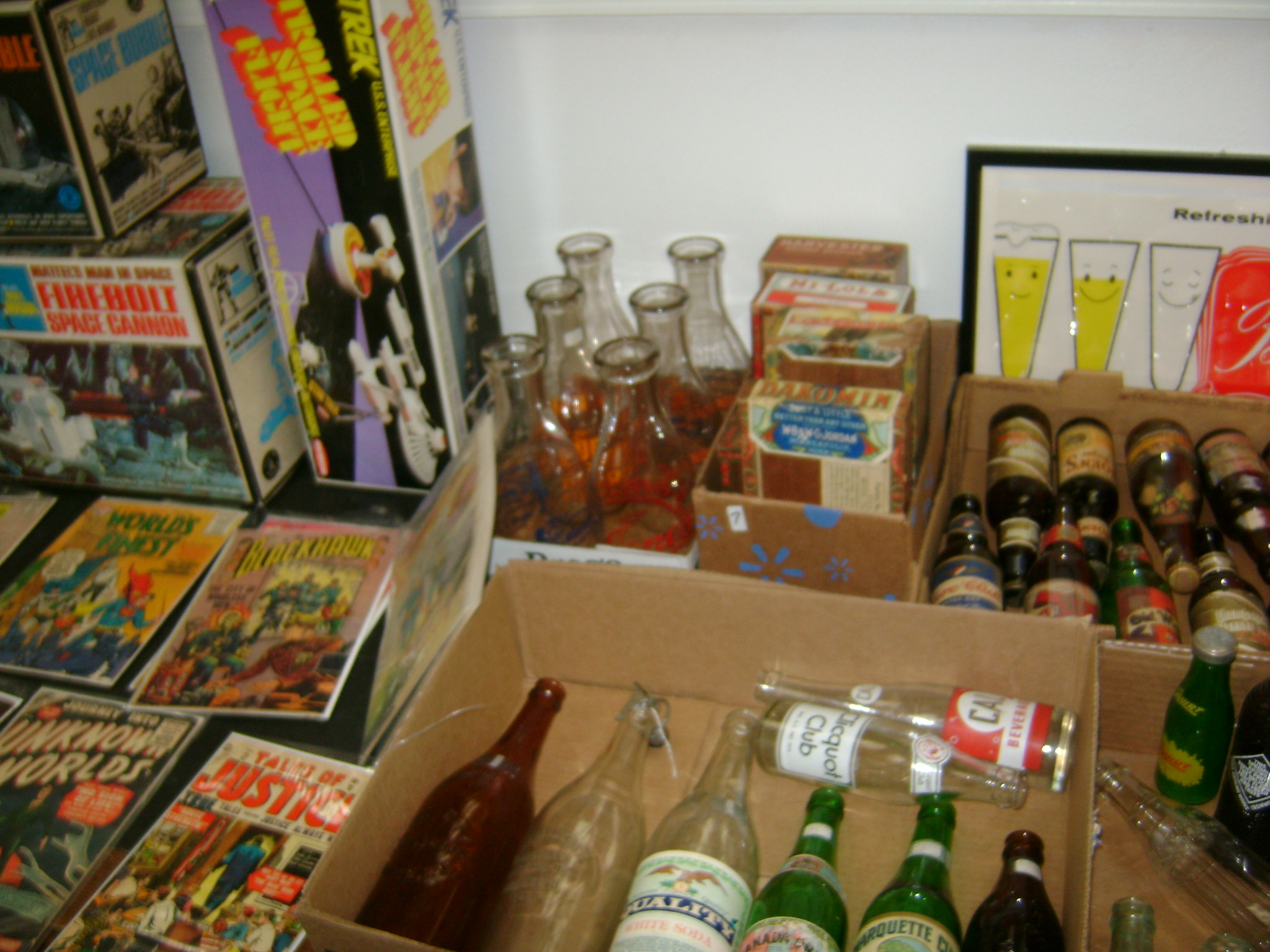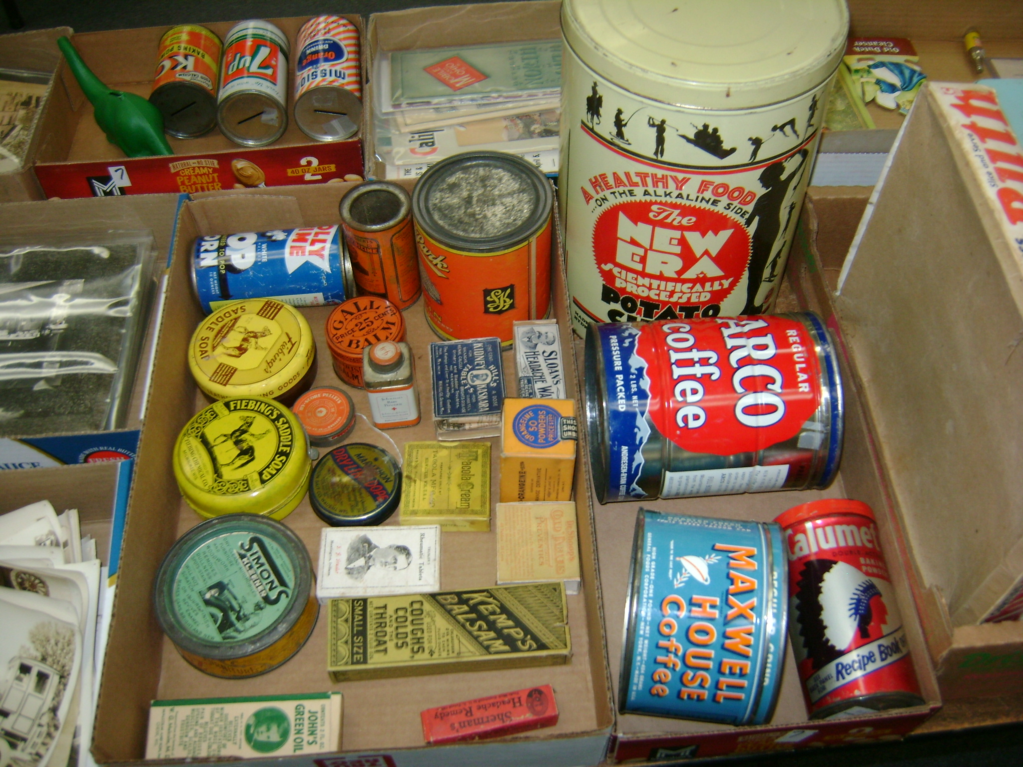 2005 Economy Hauler enclosed trailer, Tonka Parcel Delivery truck, Antique Vintage photos, advertising tins and boxes, beer signs, beer tap and knobs, beer advertising, trays and bottles, antique bottles, soda advertising, milk bottles, Comic Books ( 10 and 12 cents), Major Matt Mason toys, straight razors, banks, pencil salesman sample, Michigan Stove Match holder, depression glass, Griswold, Wagner ware and other cast iron pans, cameras, Weller vases, Roseville, kitchen scales, decanters, knives, tackle box, carpenter planes, draw shaves, gas and oil cans, Coleman lantern, Ford Pedal tractor with trailer, tools, tool boxes, and hardware, rolling tool box bottom, double wash tubs and stand, wood barrels, brass fire extinguisher, chest of drawers and dressers, 2 home kneelers, egg and gum ball machines, signs, wagons, Hangkai 3.5 boat motor, Generac Generators, chain saws and parts, air conditioner, gas pressure washers, plastic folding tables, 7 foot Cigar Wooden Indian, stereos and speakers, patio furniture, lift chair, table and chairs, safe, Keller ladder, Shop Vacs, floor jacks and stands, leaf blowers, camper cover and steps, Froth-Pak Sealant 200, grills, Lincoln electric welder, bicycles, engine hoist, skid steer folks, collapsible canoe, sprayers, weed eater with extra attachments, lawn spreaders, fencing, household, collectibles and much more, still unpacking!