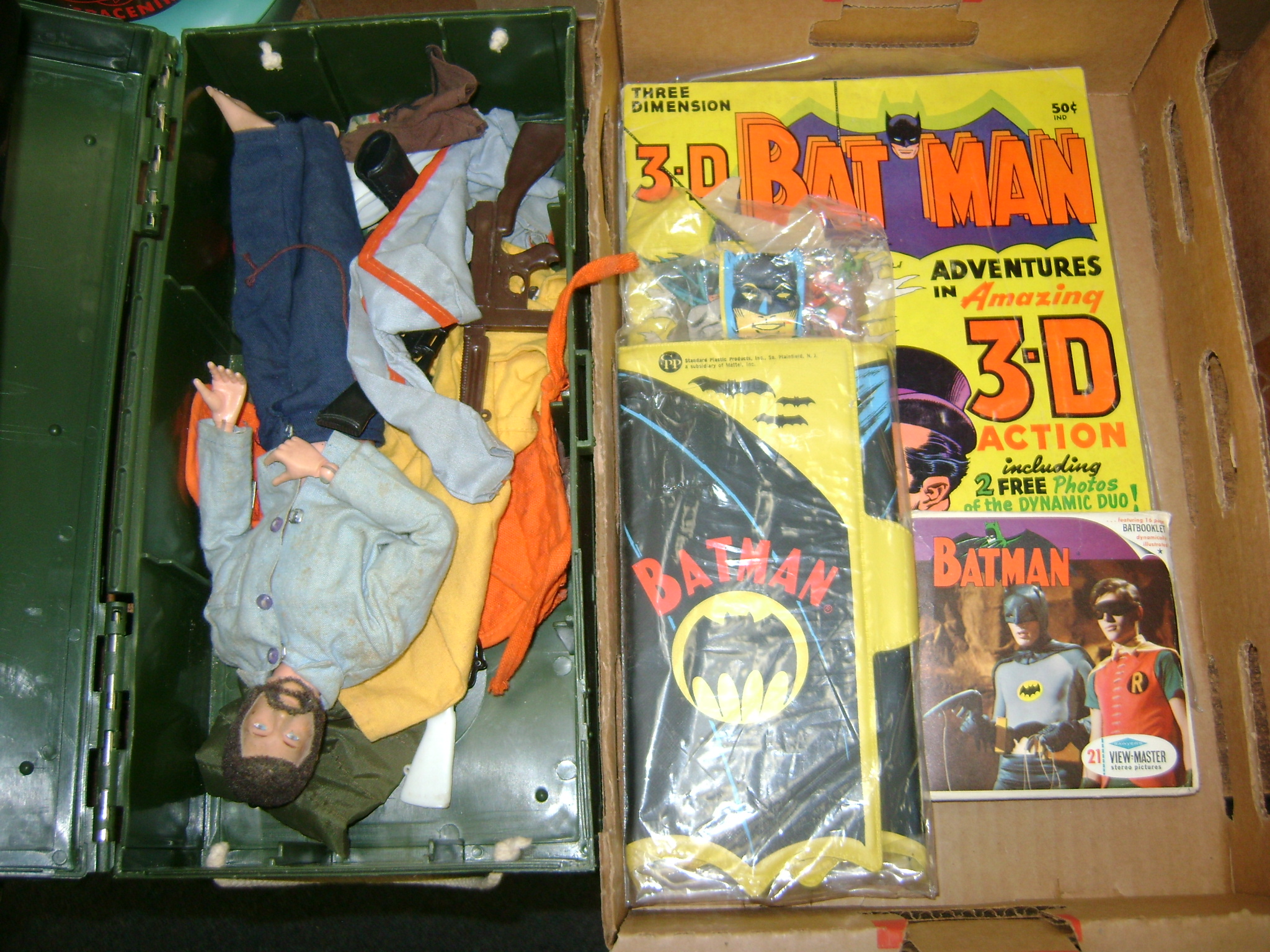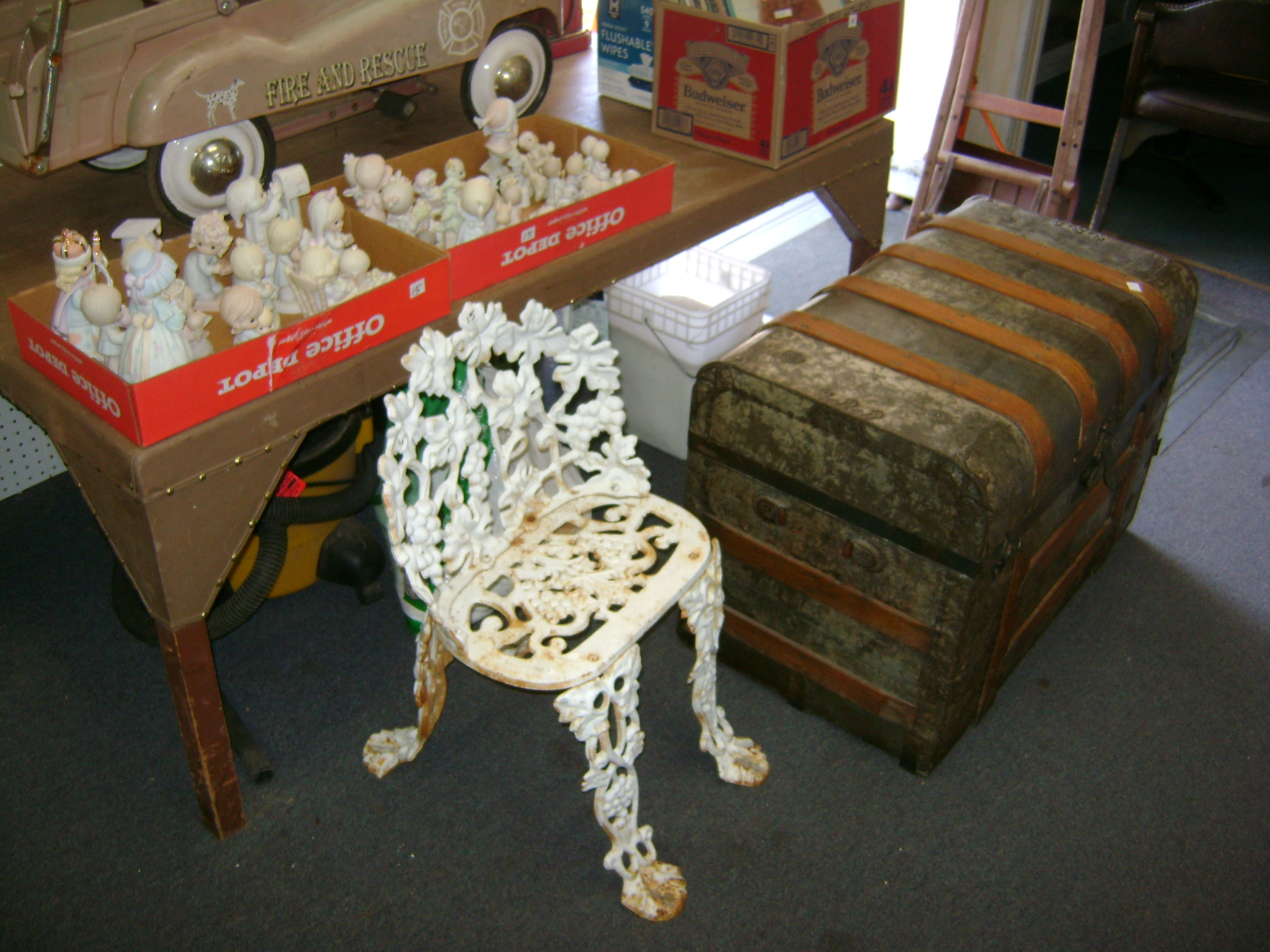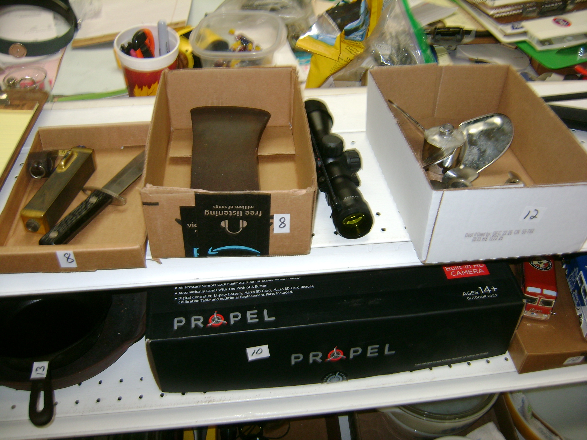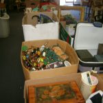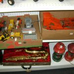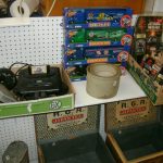 1966 Ideal Captain Action & Dr. Evil figures, Remco Monkey Helmet, Steve Zodiac Fireball XL5, GI Joe & accessories, Mike Mercury Super car lunchbox & thermos, comic books, voyage to the bottom of the sea toys and games, Sar Trek modes, 1960’s coloring books & puzzles, Babes in Toyland Toys, Military & Castle playsets, cartoon bottles, Allis Chalmers toy tractors, political pinback buttons, knives, toy mustangs & other toys, signs, beer glasses, large Budweiser bottles, trumpet and saxophone, mantle clock, Oshkosh tea boxes, Coleman lanterns, C&NY Railway Flair holder, Pyrex, cast iron pans, spotting scope, scopes, patches, jewelery, advertising items, Precious Moments collection, leather jackets, Winchester Model-1911SL 12 ga “Widow Makers” shotgun, Remington 870 Express 12ga, Remington 870 Wingmaster 12ga, Remington Model 11-48 20ga, Remington TargetMaster model 510 22cal rifle, Rewmington Speed Master model 552 22cal, Columbia 12 ga single shot, Taurus Rossi 410ga, cigar boxes, tools and hardware, floor and table lamps, records, pedal firecar, Royal Oak Cast ironwood stove, metal cabinets, hutch, wardrobes, corner cabinet, lawn chairs, vintage chainsaw, bench grinder, Delta sander, Craftsman planer, Craftsman table router, ship, plastic cabinets, vintage doctors exam table, Enterprise sausage stuffer, golf clubs, shop lights, step ladders, fans, plastic cabinets, TV;s, vintage department store rack, work tables, pew, chairs, sewing machine, holiday and yard ornaments, pictures, household, collectibles and more